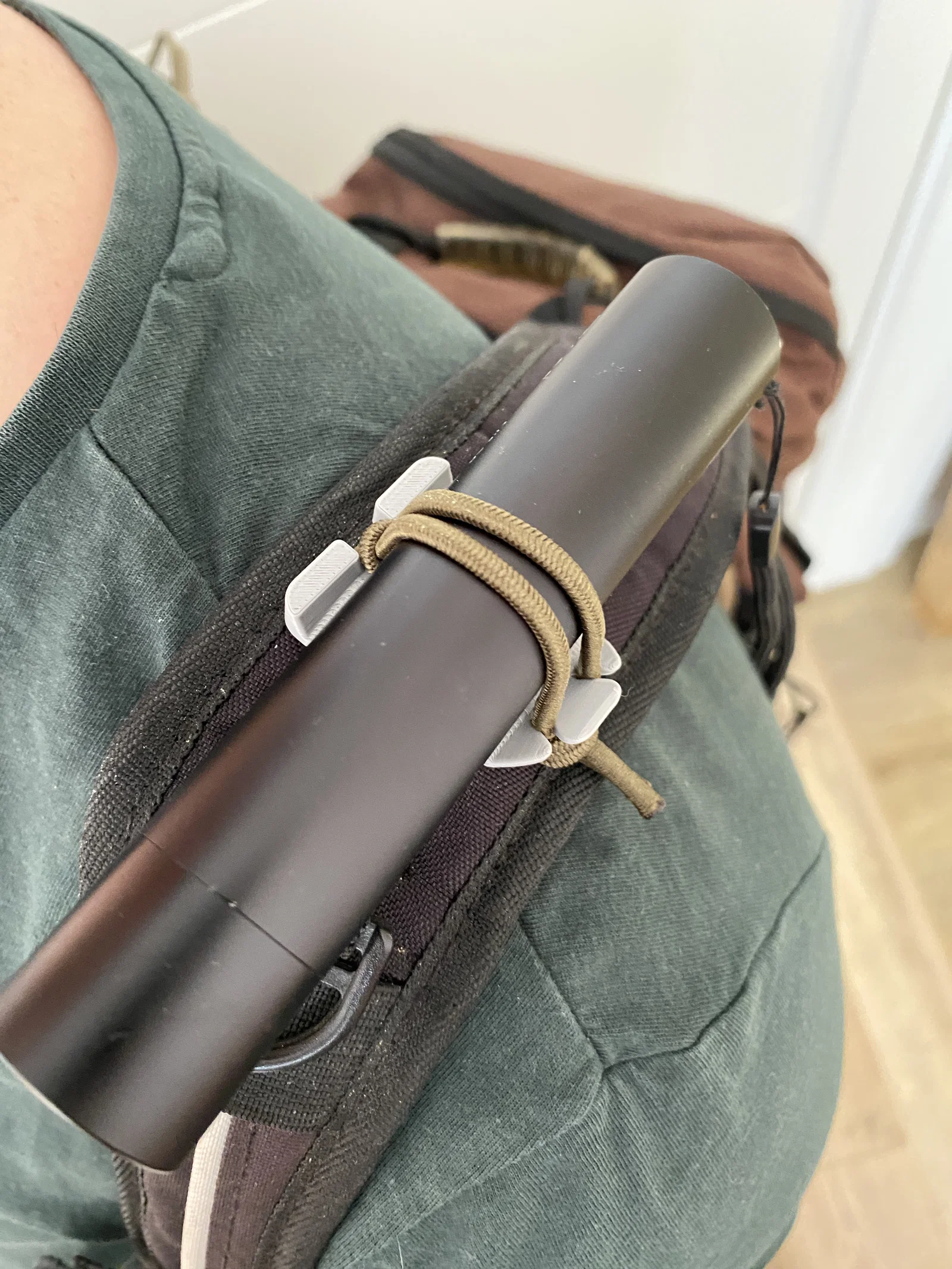 Molle Buckle Clip nhỏ gọn kèm dây thun, dùng cho hệ MOLLE để gắn và cố định phụ kiện như đèn, chìa khóa, carabiner, hoặc giữ ống nước CamelBak trên balo/áo tactical. Lắp nhanh, chắc chắn, gọn gàng.