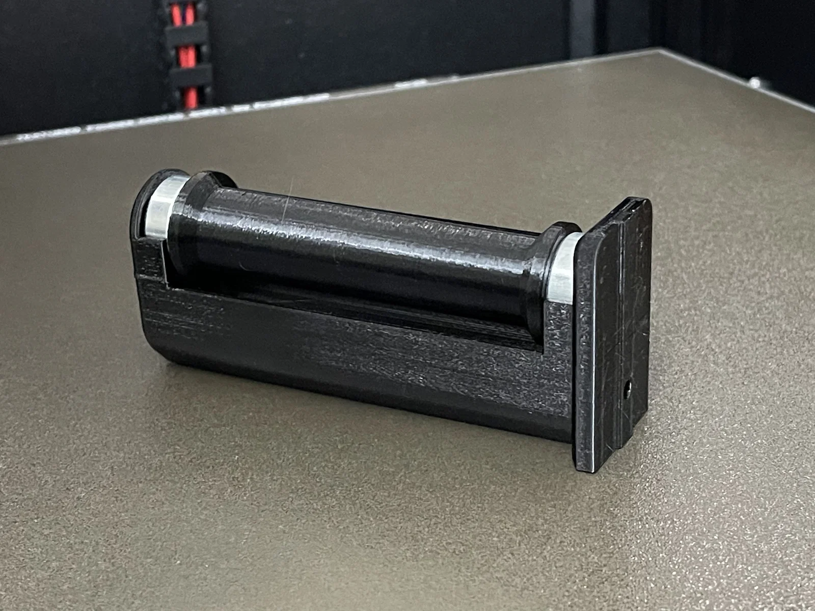 Thiết kế dùng 2 cái 608 bearing, chỉ cần bấm (pop) vào hai đầu của trục (shaft). Sau đó trục này đặt lên các bệ đỡ bearing (bearing cradles) trong phần holder. Hai holder được bắt lên thanh ray bên hông bằng vít M4 x 12 lấy từ bộ XL spool holder zin (spool holder nhựa injection moulded).