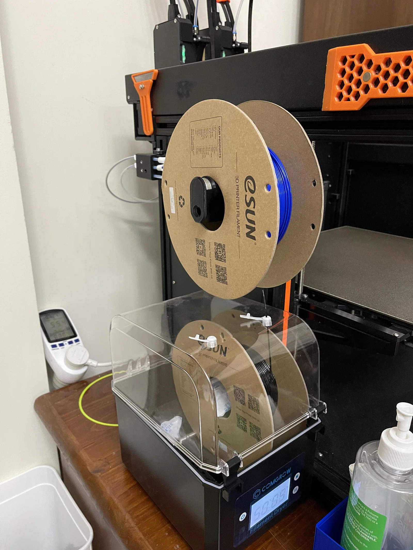 Mình muốn thay mấy cái XL Spool Holder dạng “đứng yên” bằng một kiểu holder có tích hợp bearing. Dùng rất tiện, سواء là để treo cuộn filament trực tiếp, hoặc khi kéo filament thẳng từ máy sấy filament (filament dryer).