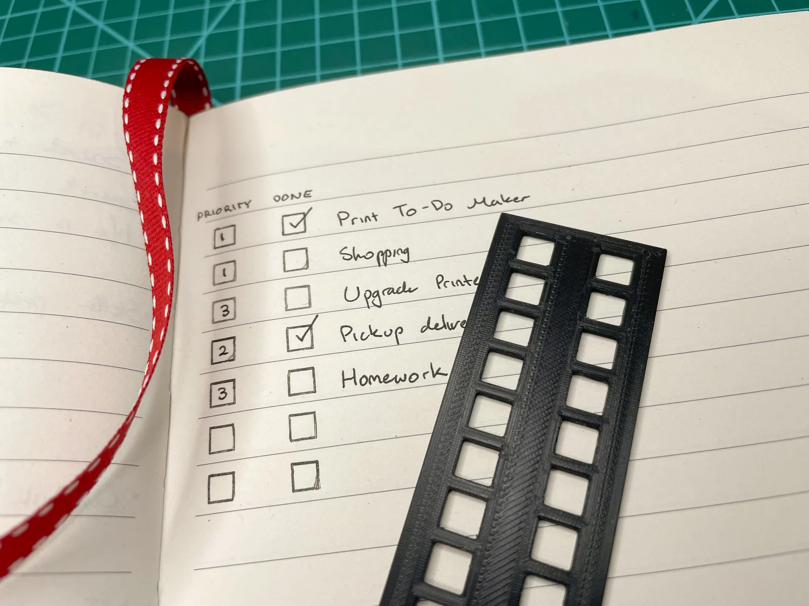Một lưới 2x10 gồm các ô vuông để dùng làm stencil kẻ danh sách việc cần làm (to do list) trên giấy có khoảng cách dòng 8mm. Model có thể scale để phù hợp với các khoảng cách dòng khác nhau. Thiết kế hai cột cho phép bạn kết hợp ô tick, danh sách ưu tiên, nhóm công việc hoặc mã màu.