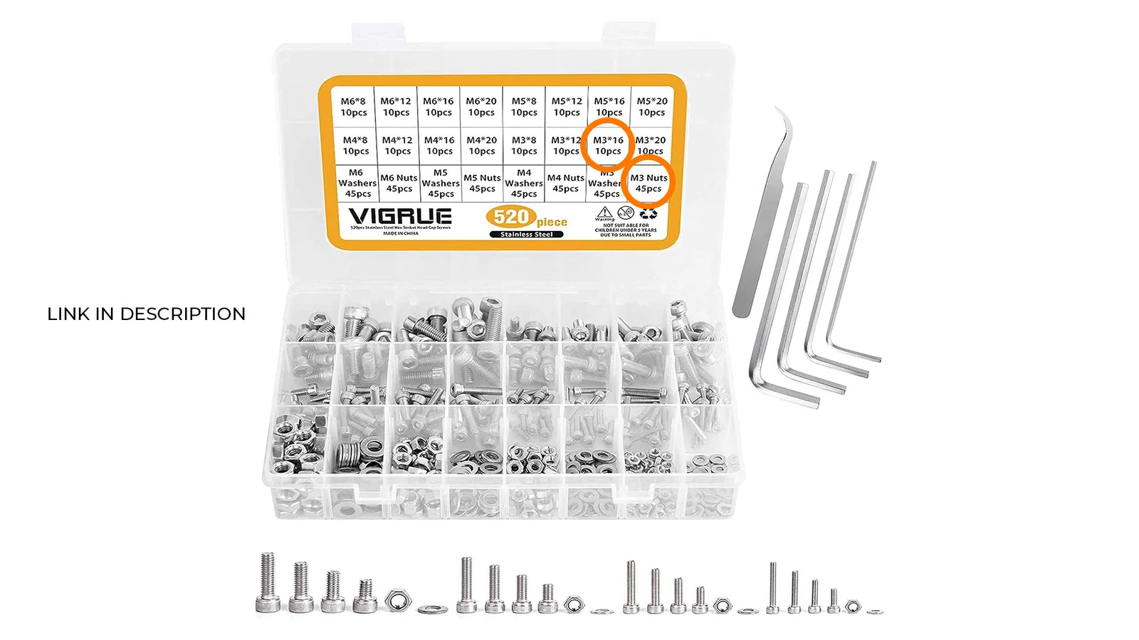 Nếu bạn chỉ muốn mua riêng M3 thì đây: https://www.amazon.com/VIGRUE-180Pcs-Stainless-Washers-Assortment/dp/B083SGJ7BD?ref_=ast_sto_dp&th=1