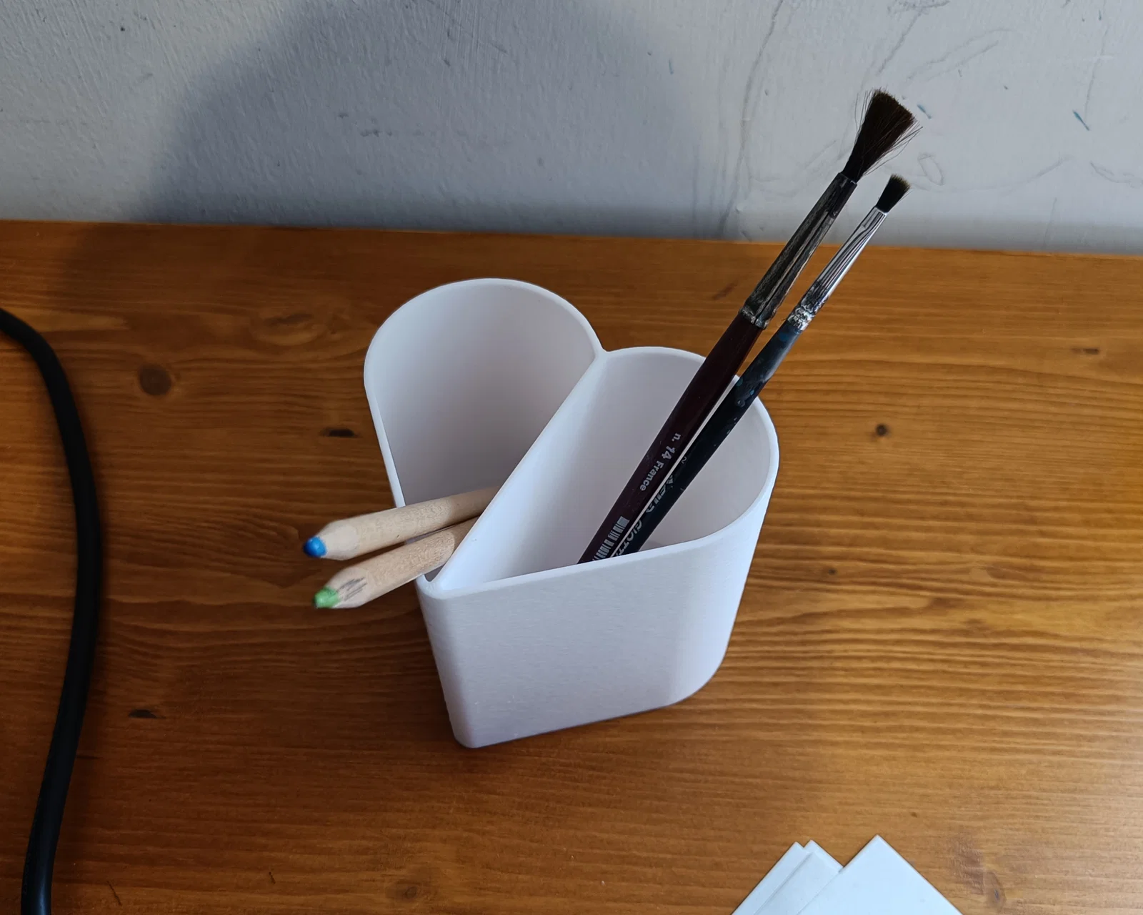 Ly/ống đựng hình trái tim dùng để cắm bút chì hoặc cọ trang điểm. Mẫu cao 90mm; nếu cần thấp hơn bạn có thể cắt trực tiếp trong slicer hoặc liên hệ tác giả để được hỗ trợ.