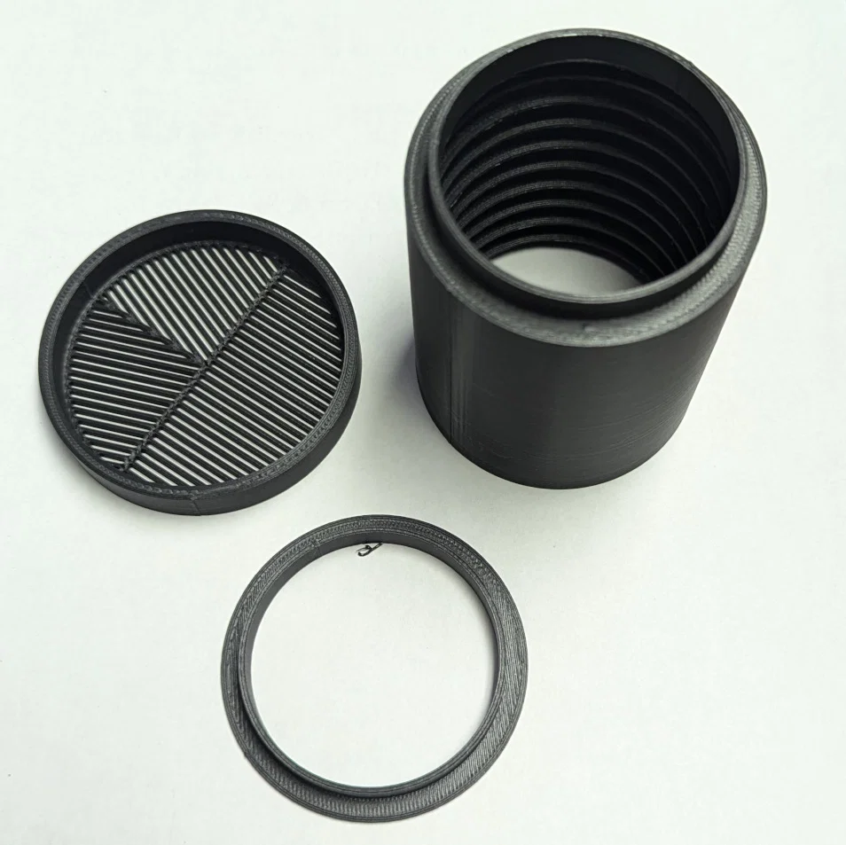Nếu bạn dùng aligned seams, nó sẽ tạo một cái “nub” nhỏ nhìn gọn và giúp fit khít hơn. Như thường lệ, vật liệu của bạn có thể co ngót nhiều/ít hơn loại mình dùng, nên có thể cần chỉnh XY size, hoặc chà nhám nhẹ phần ngoài của collar để vừa nhất. Mình dùng PLA loại matte, nhưng vẫn phải sơn ít nhất là mép của baffles bằng sơn đen nhám (flat black) tốt để giảm reflections. Chà nhám nhẹ mép baffles cũng giúp loại bỏ các “gai” nhọn do sai số in và do support.