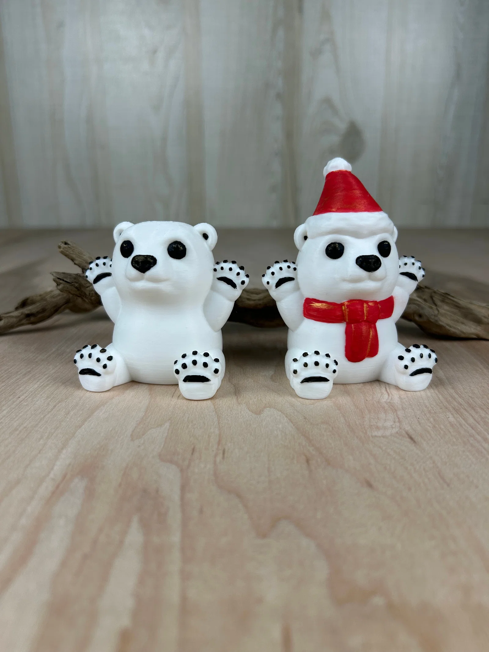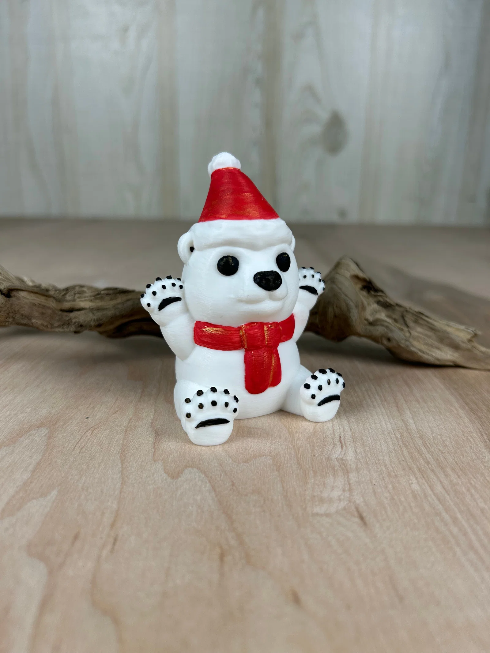 Mẫu gấu Bắc Cực dễ in, không cần supports. Có 2 phiên bản: gấu thường và gấu đội mũ kèm khăn choàng. Bao gồm STL và file .3mf đã sơn; in tốt ở layer height 0.2 với kích thước hiện tại.
