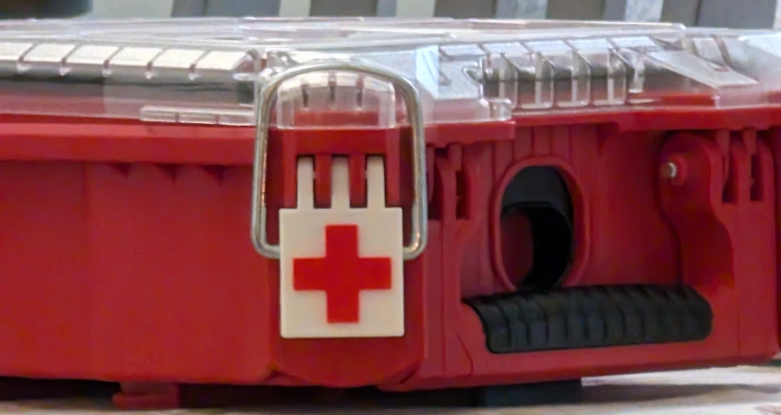 Nếu bác đang sở hữu các thùng đựng đồ Milwaukee Packout (đặc biệt là model 48-22-8435) và muốn biến chúng thành bộ sơ cứu chuyên dụng, thì đây chính là phụ kiện không thể thiếu. Mẫu thiết kế này là một chốt gài thay thế thông minh, được tích hợp sẵn biểu tượng chữ thập y tế nổi bật trên bề mặt. Nhờ đó, bác có thể dễ dàng nhận diện hộp đựng đồ y tế giữa hàng đống thùng đồ nghề khác trong xưởng hoặc trên xe một cách nhanh chóng và chính xác.