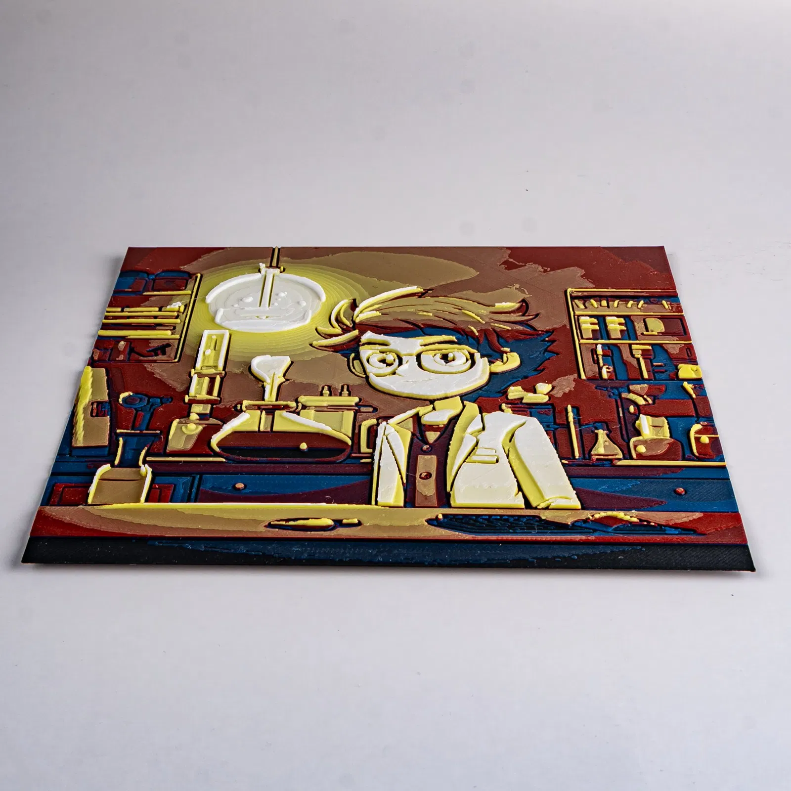 HueForge Nhà khoa học Chibbi được tạo ra cho Bộ tiêu chuẩn Polymaker của các loại filament. Chỉ cần thay đổi màu sắc thủ công.