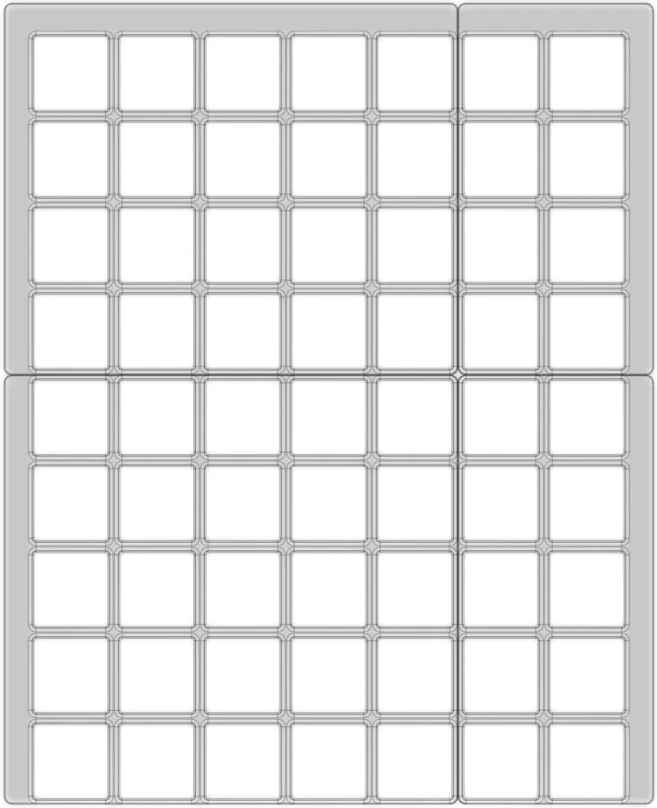 Baseplate Gridfinity vừa khít ngăn kéo bàn IKEA Malm (317 × 391mm). Thiết kế chia 4 phần để phù hợp với đa số khổ bàn in. Bản light, không nam châm, không lỗ vít, có thêm side padding để canh giữa trong ngăn kéo.