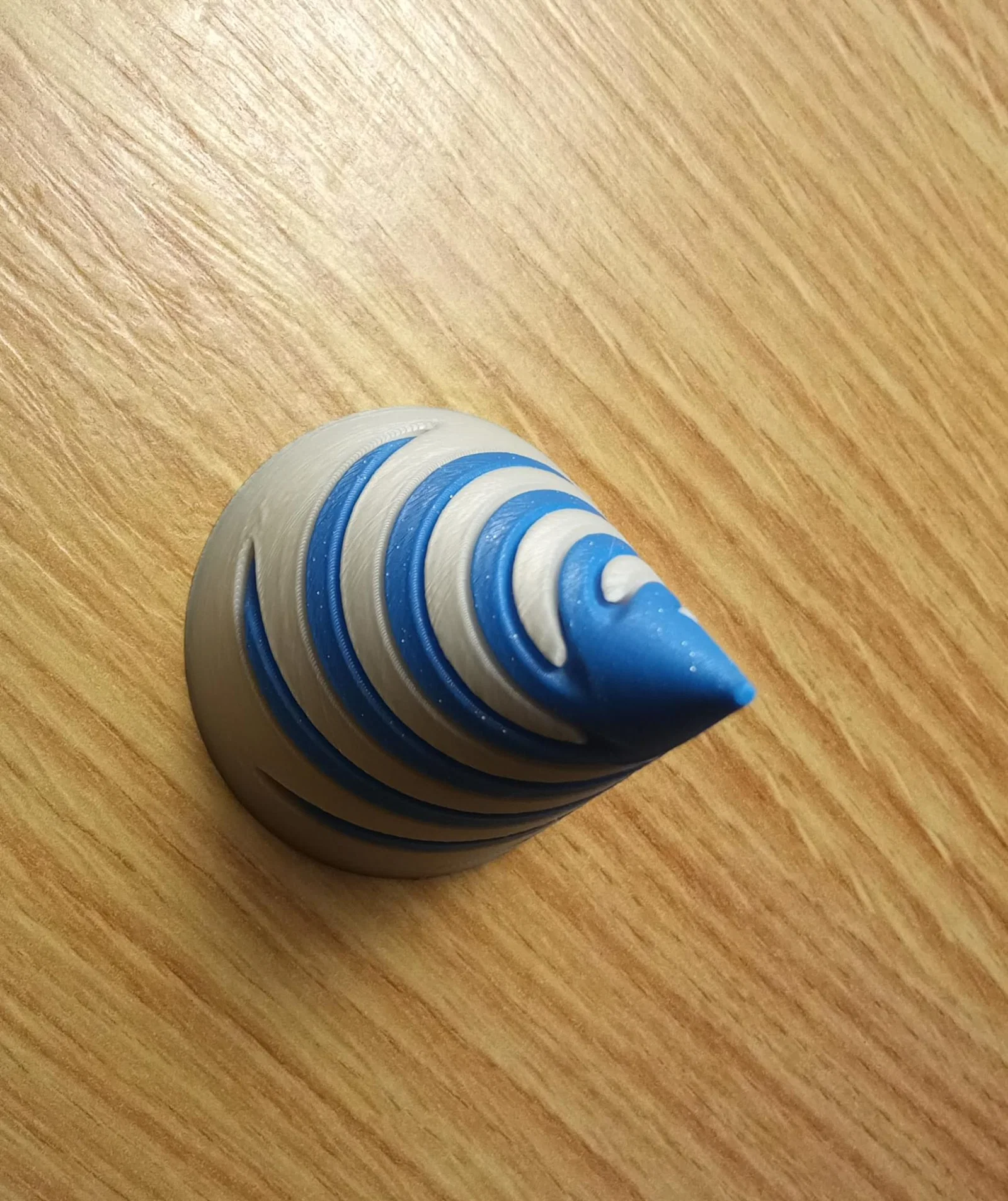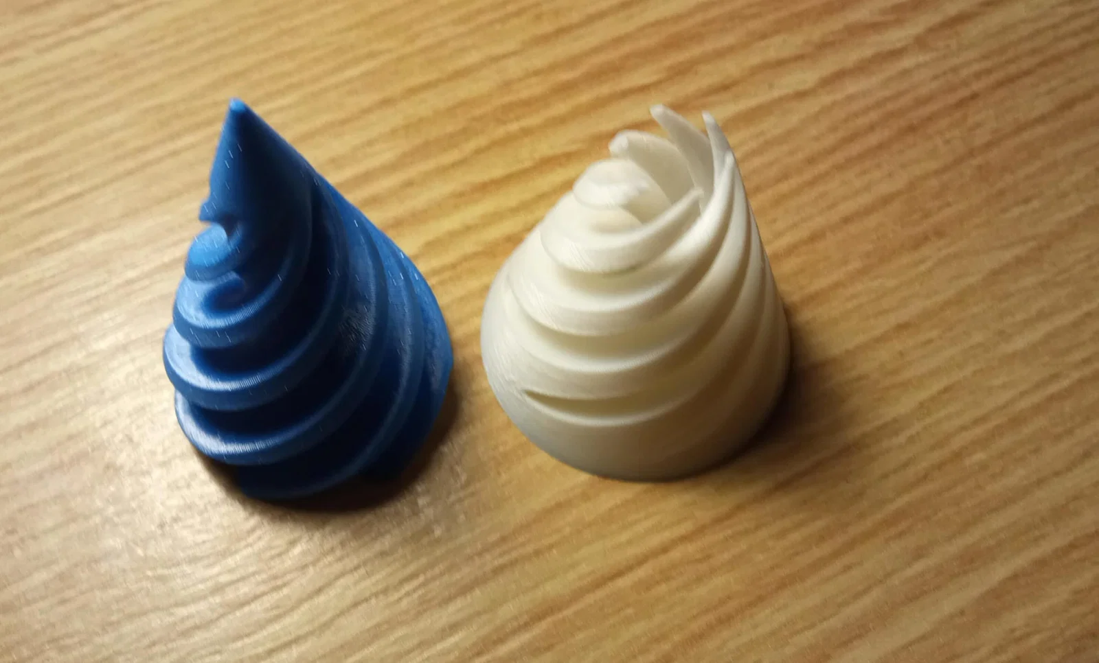 Sức hút của mẫu thiết kế này nằm ở sự kết hợp giữa hai phần hình nón riêng biệt nhưng lại được chế tạo để lắp ghép khít khao với nhau. Bạn có thể in mỗi phần bằng những màu sắc khác nhau, ví dụ như trắng và xanh dương, để làm nổi bật những đường cong uyển chuyển khi chúng xoắn chặt lấy nhau. Khi đã hoàn thiện, sản phẩm mang lại cảm giác thị giác rất đặc biệt, giống như một khối vật thể có cấu trúc "không tưởng" mà bạn chỉ có thể có được nhờ khả năng tạo hình lớp của máy in 3D.