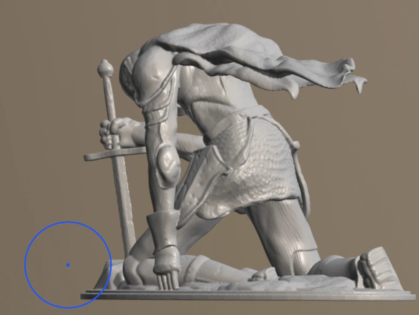 - Cấu trúc hỗ trợ (Supports): Do tư thế quỳ và phần áo choàng có nhiều chi tiết nhô ra, hãy thiết lập hỗ trợ cẩn thận để tránh làm mất chi tiết khi gỡ bỏ, đặc biệt là ở phần mũi kiếm và các nếp vải.