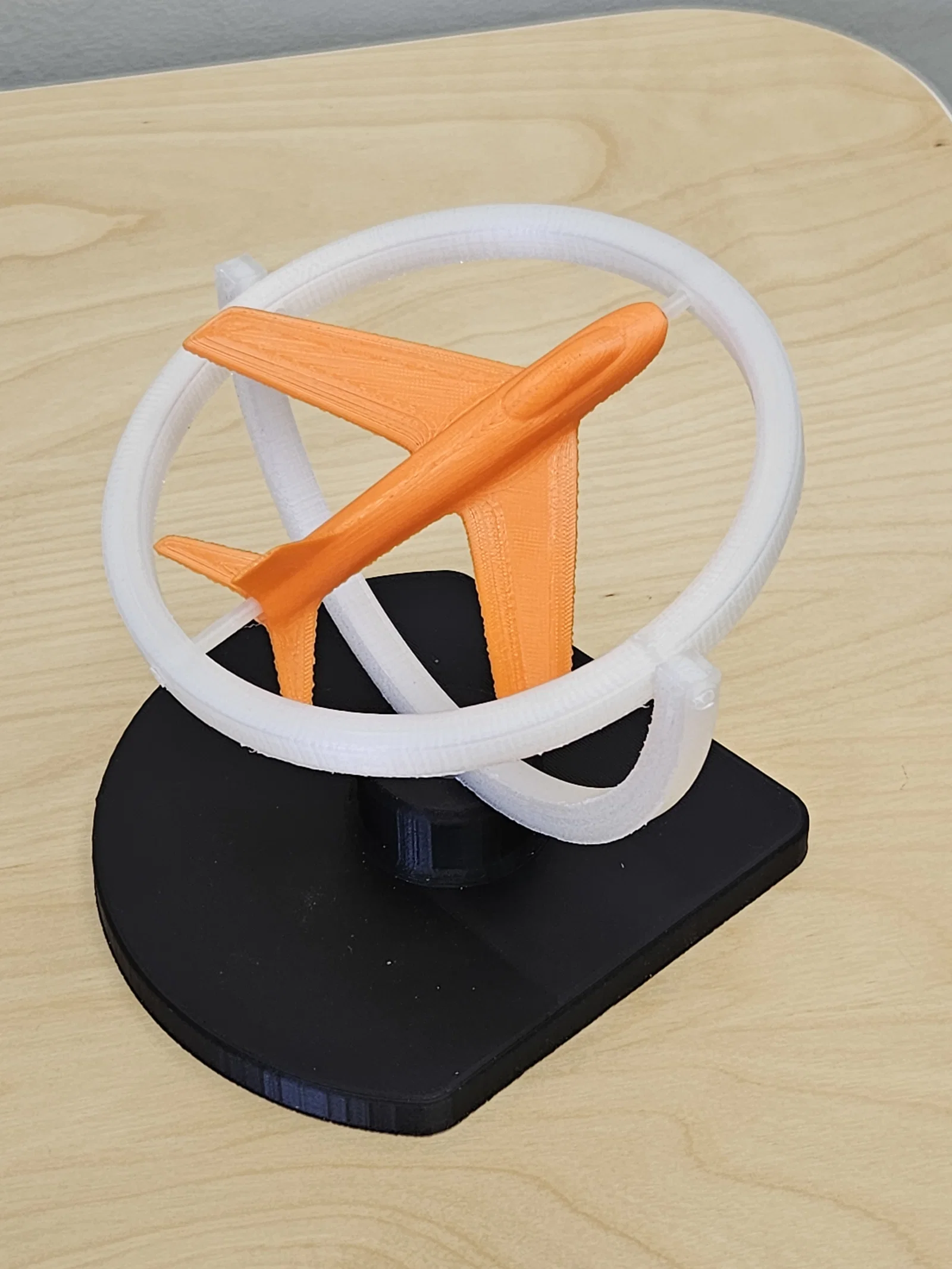 Mô hình gimbal để bàn giúp trực quan hoá và giảng dạy các góc Euler Yaw/Pitch/Roll trong hàng không. Có bản ring đồng tâm hoặc lệch tâm; có thể cần scale pin STL để đạt press-fit phù hợp tuỳ máy in.