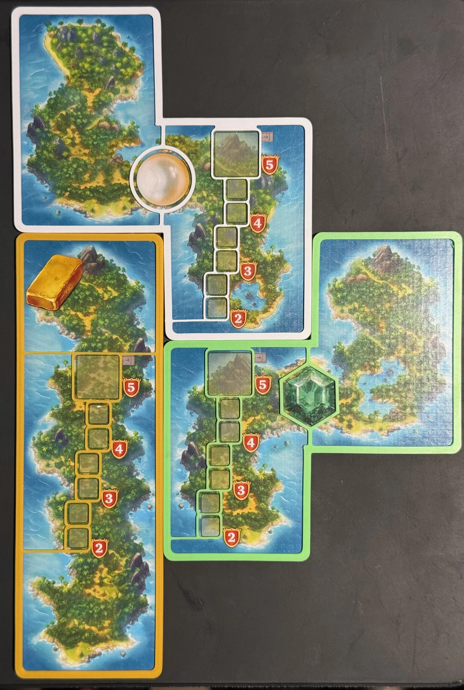 Bộ overlay dành cho player boards và 3 island boards (Emerald, Gold, Pearl) của _Pirates of Maracaibo_. Thiết kế ôm khít lên board, giúp giữ treasure cube cố định, hạn chế xê dịch khi đang chơi.