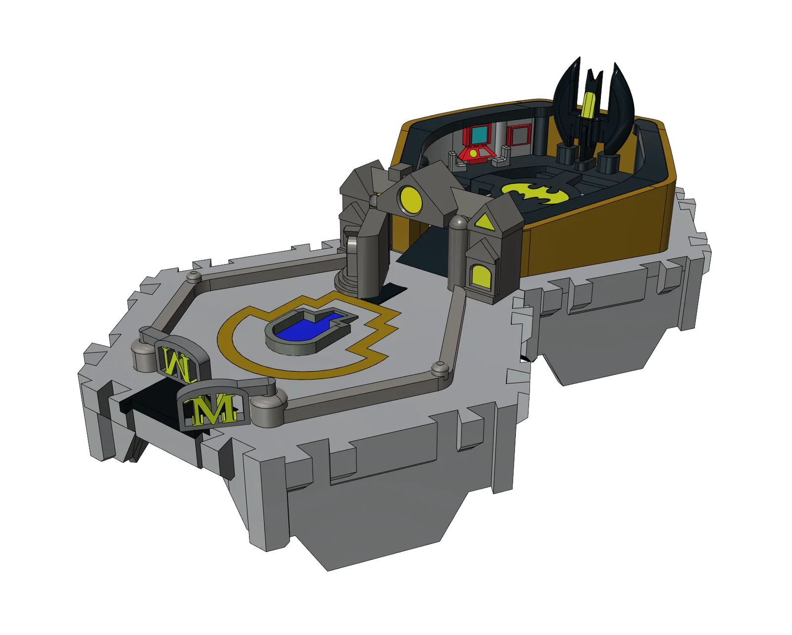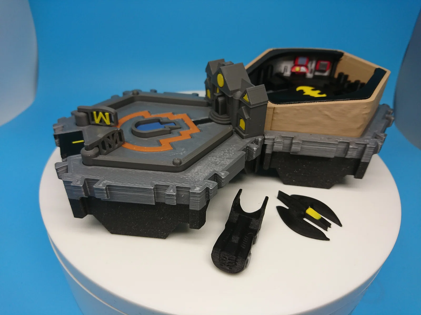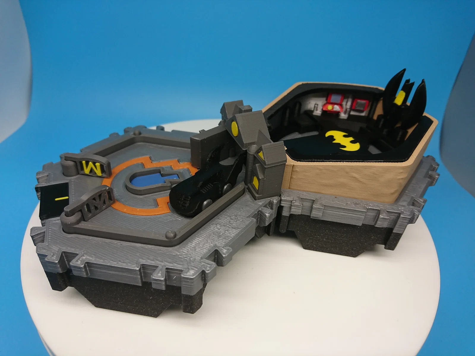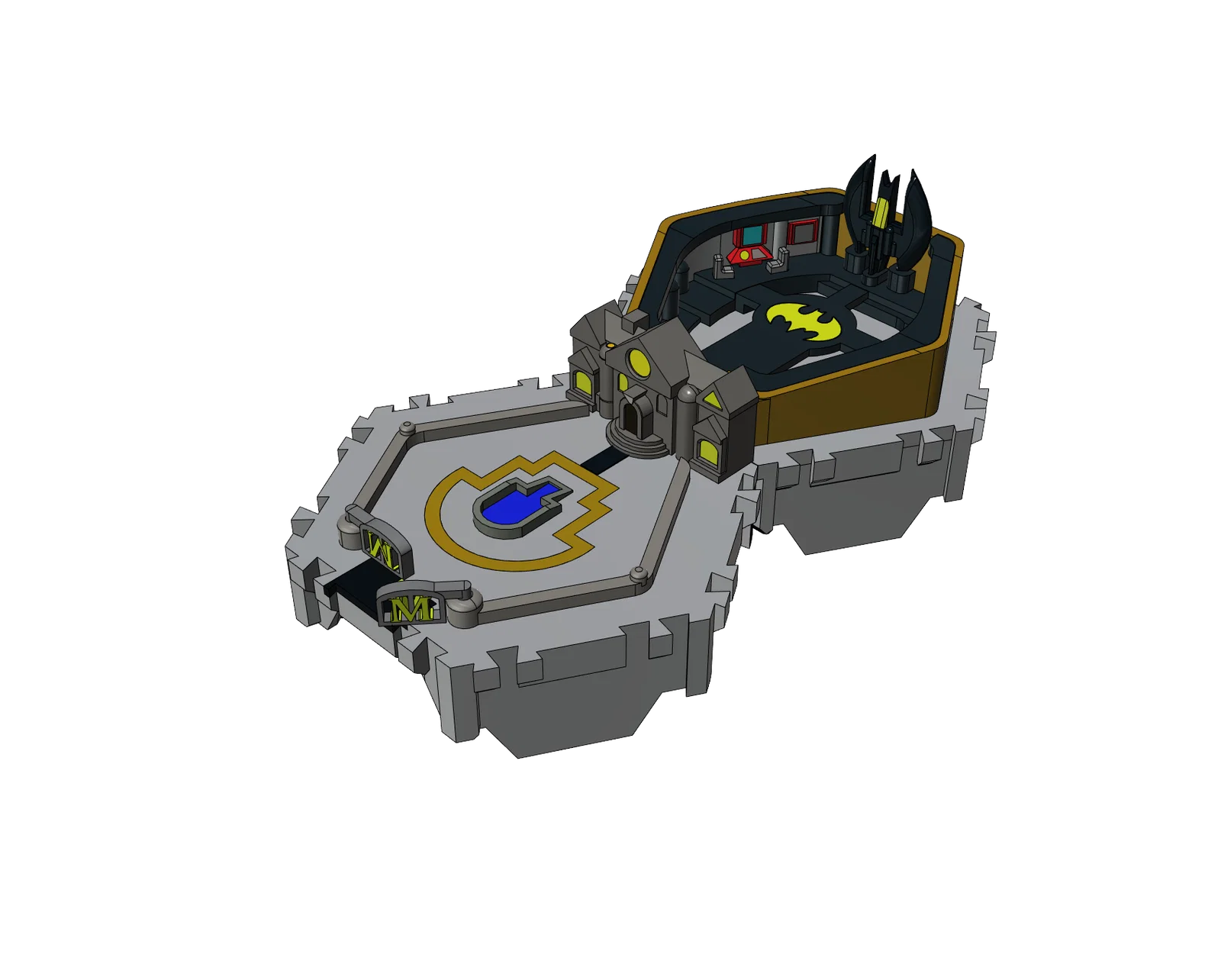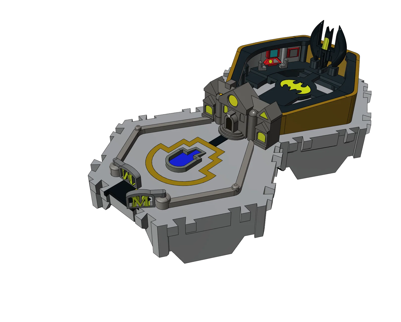 Playset Little Cities phiên bản Wayne Manor / Batcave cho Batman, có cửa mở bí mật ở mặt trước và chỗ đậu Batwing. In từng phần theo màu phù hợp (không MMU), rồi dán/ghép lại; kèm hướng dẫn lắp ráp.