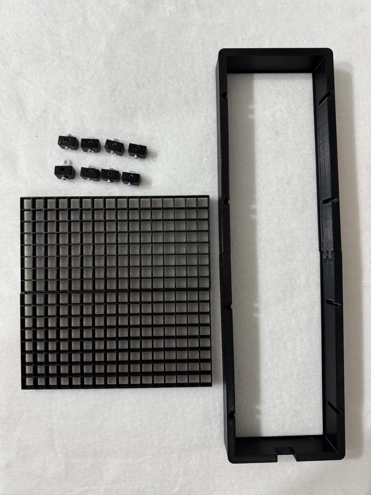 Khung LED Matrix cho AWTRIX 8x32 dùng dải WS2812B flex và ESP32. Hướng dẫn dùng 2 tấm diffuser từ màn LCD cũ, cần khung diffuser của dự án gốc, kèm gợi ý in support và danh sách ốc/vít M3.