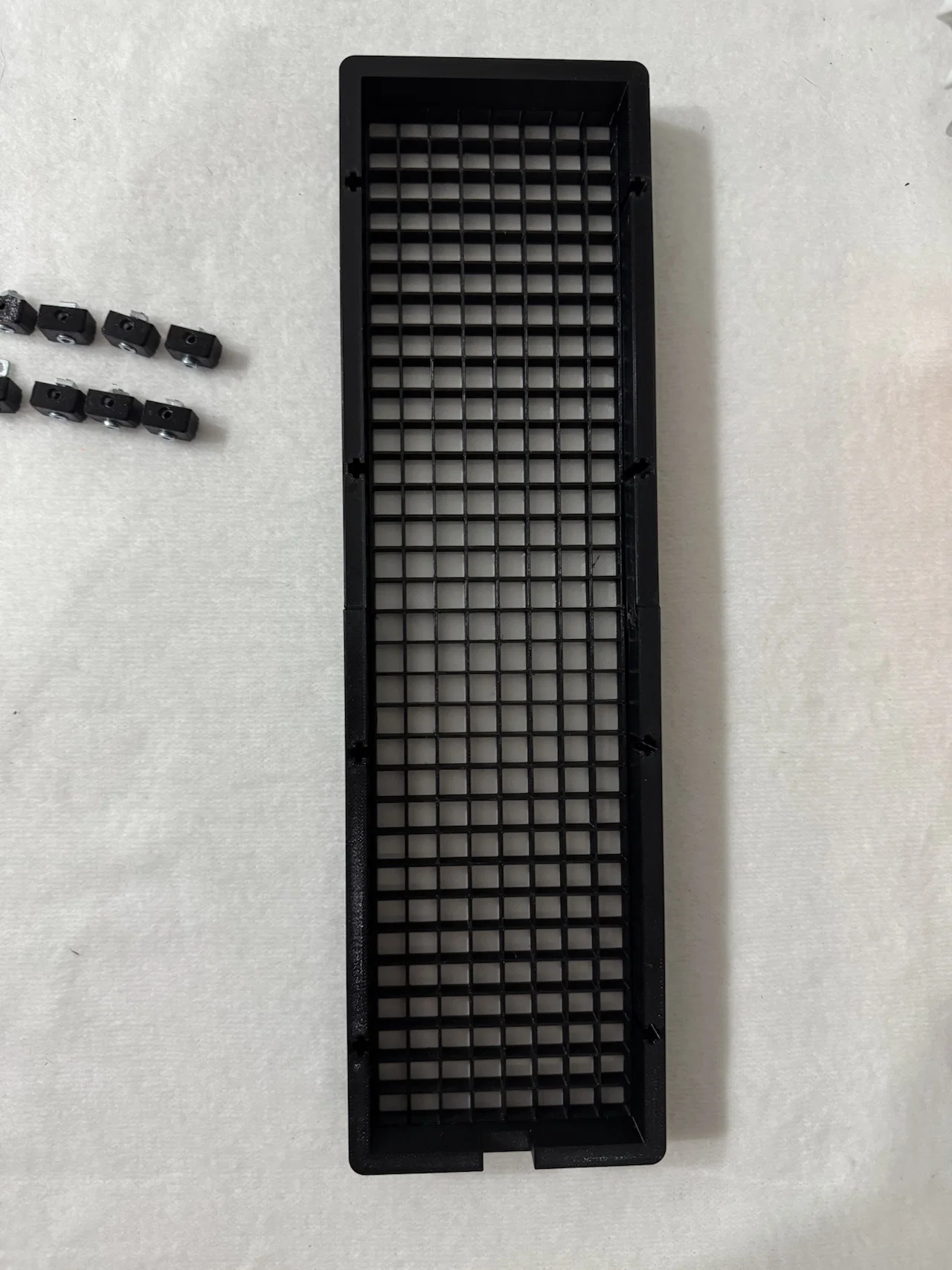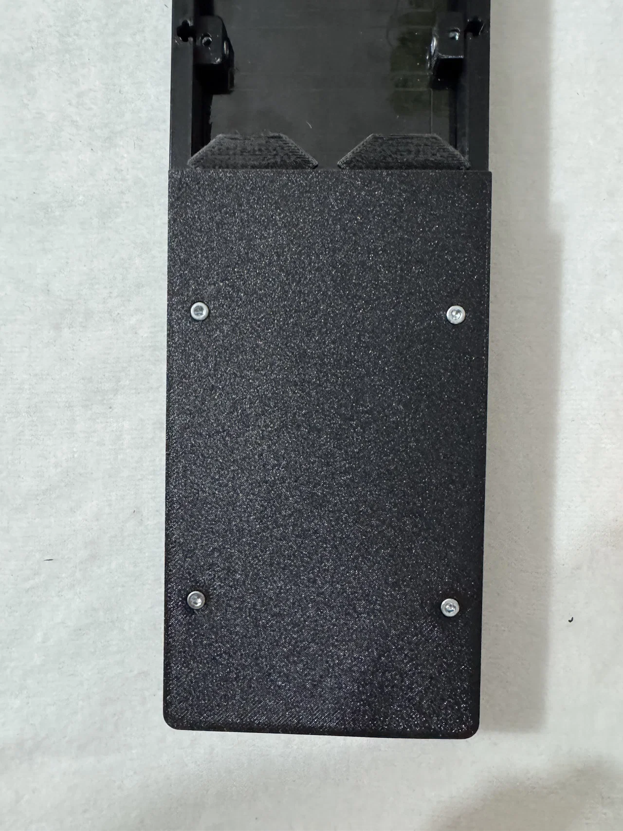 Mình dùng 2 tấm diffuser lấy từ màn LCD cũ. Cắt kích thước 321x81mm. Bạn sẽ cần khung diffuser (không có màn) từ dự án gốc. Mình làm thêm ngàm/giá đỡ để siết cố định matrix LED xuống, đồng thời dùng luôn làm lỗ bắt cho nắp lưng.