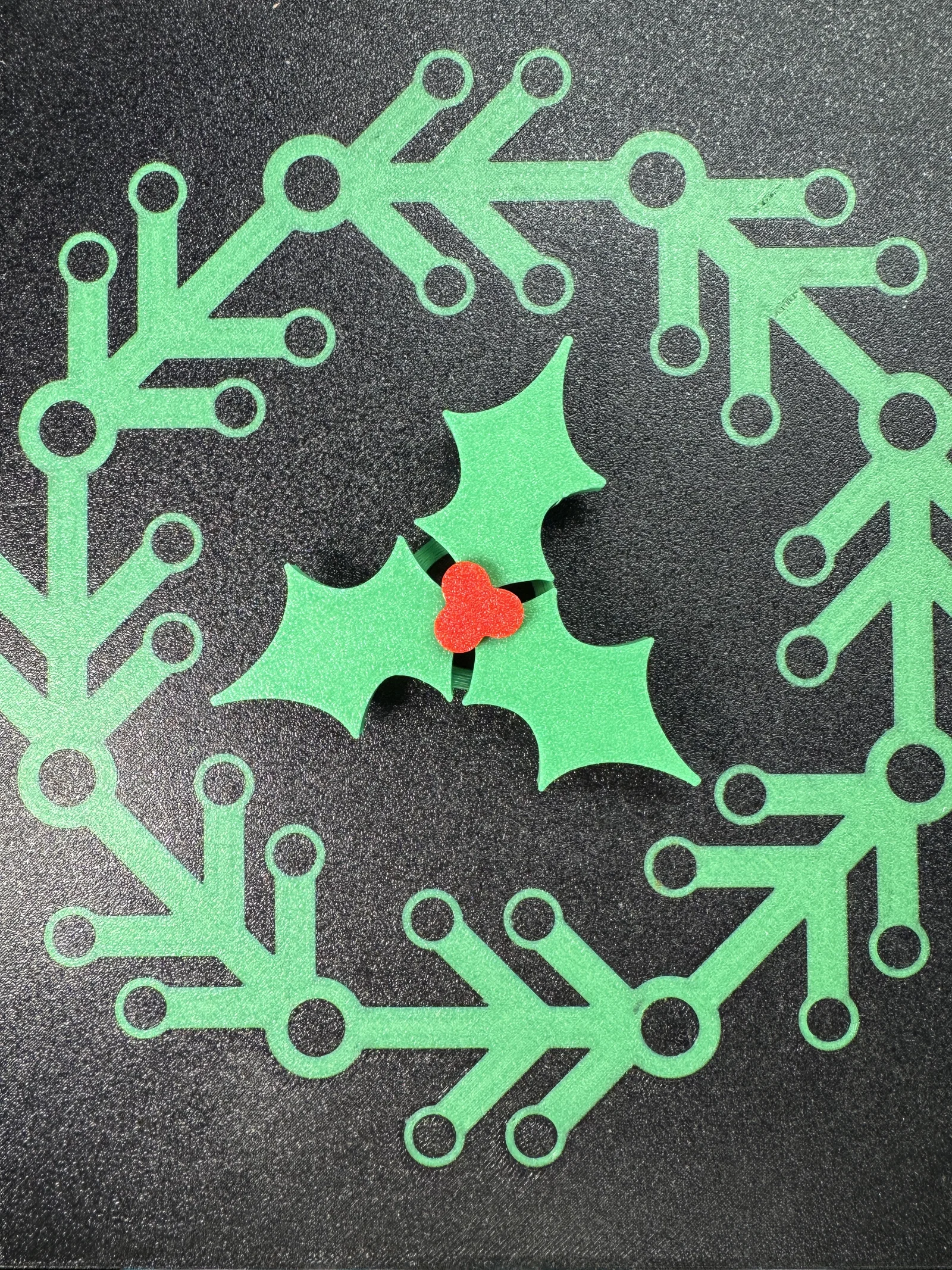 Bộ lá và quả holly dùng để gắn lên Lego Wreath của MagnumDanger. Tác giả đã in vòng nguyệt quế ở 70% và các chi tiết gắn khá khít. Chưa kiểm tra bản 100% khi dùng với vòng in 100%.