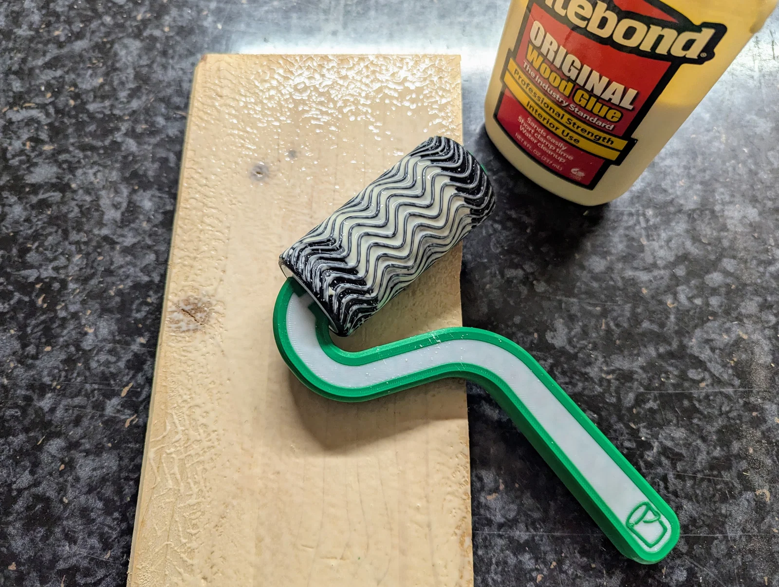 Món này dành cho anh em làm mộc và thợ carpentry. Khi cần dán keo những tấm gỗ lớn, bạn sẽ cần dụng cụ để quét keo. Và đúng cho việc đó là mẫu in được Textured Glue Roller của mình.