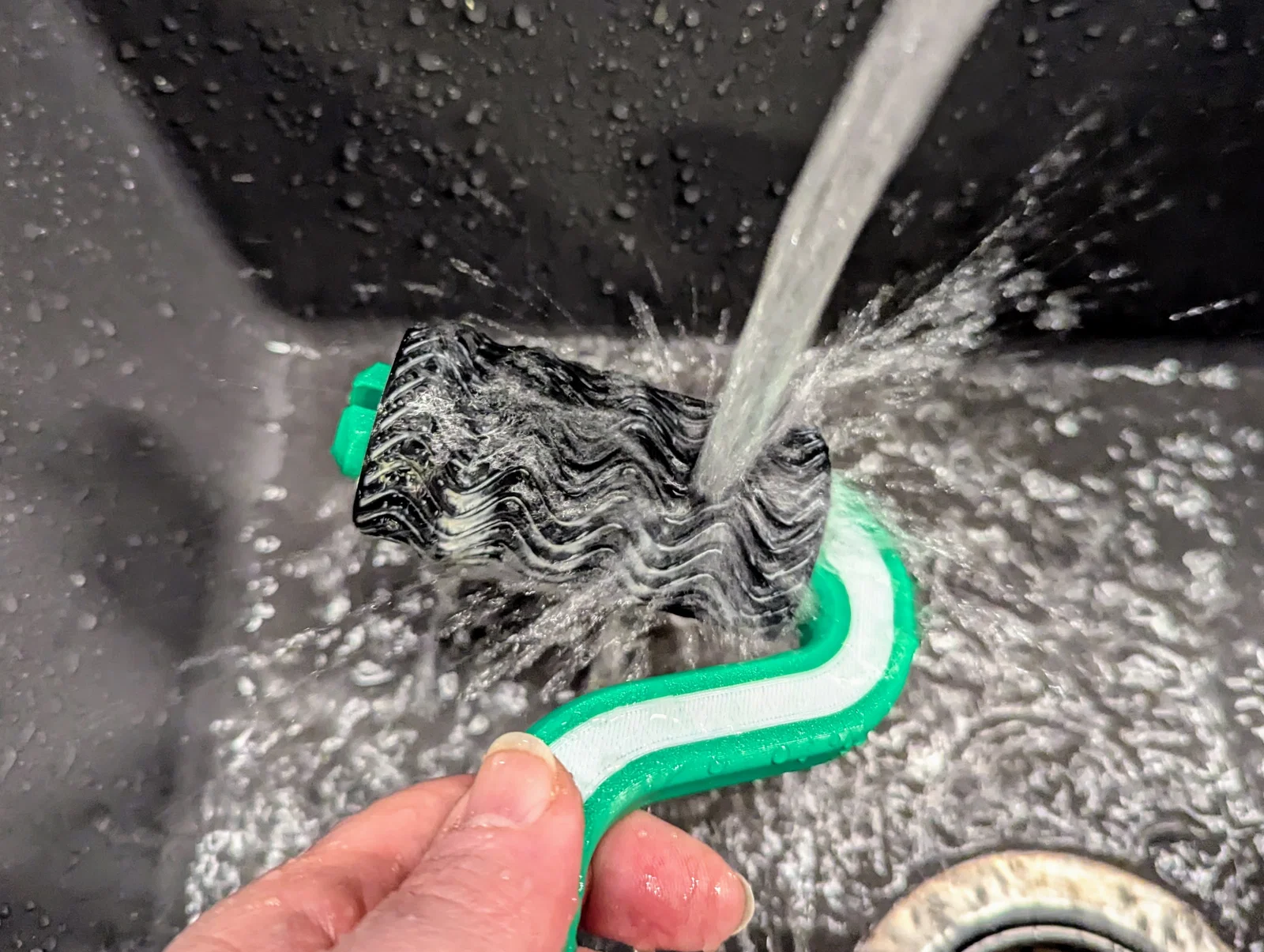 In tay cầm bằng PETG. Dùng setting tiêu chuẩn nhưng giảm mọi tốc độ xuống 30%. Làm vậy ra bề mặt sẽ đẹp hơn.