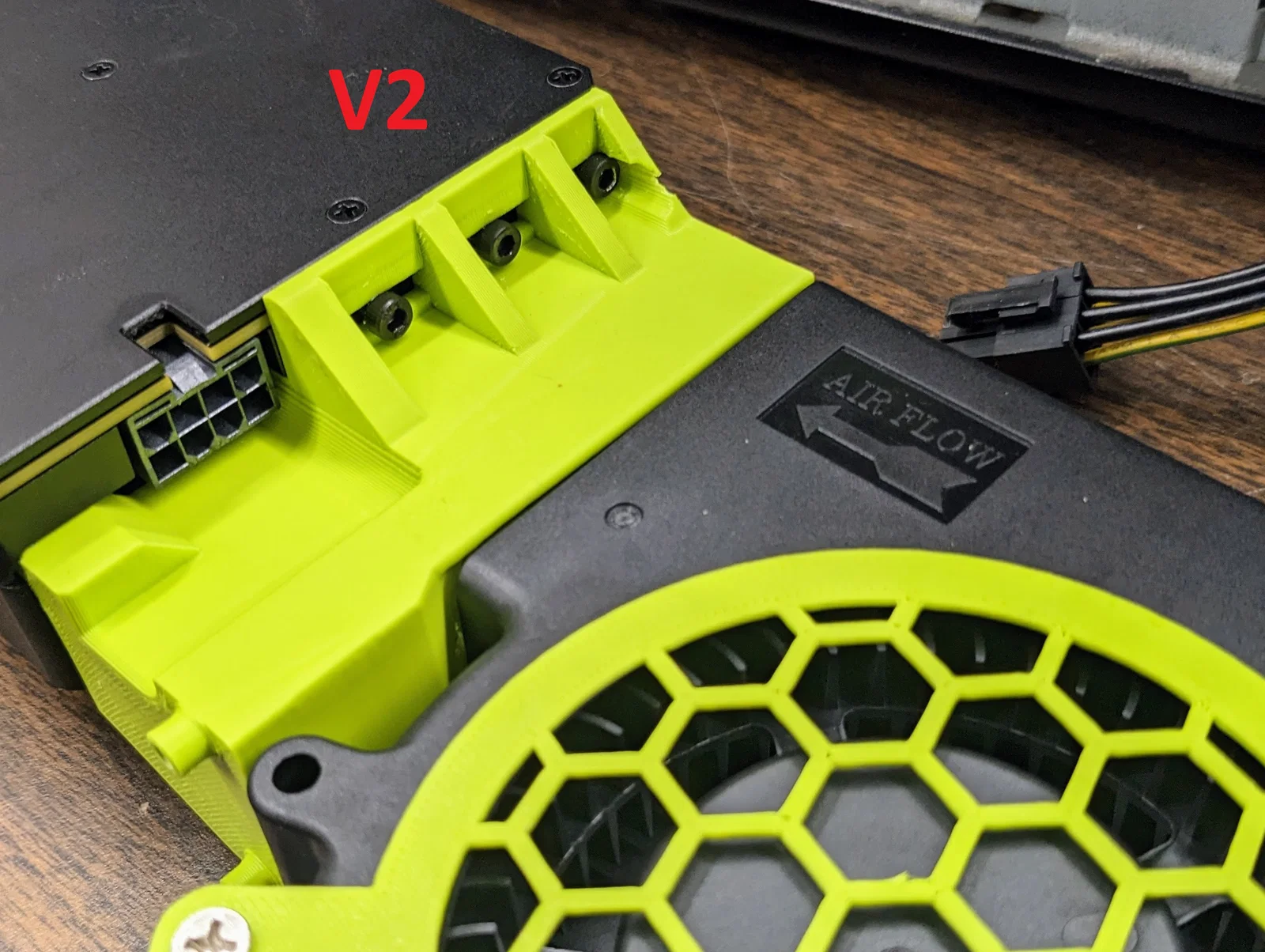 Bản mod nhanh gọn lẹ (nhấn mạnh là “gọn” kiểu hơi ẩu) từ ống gió blower 120mm góc 90 độ của HojoWork. Mình bỏ khúc bẻ góc đi để về lý thuyết bạn có thể gắn 2+ card chung một bo. In sẽ cần supports.
