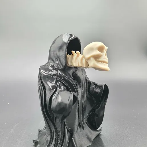 Grim Reaper (Slim Reaper) gồm 2 phần: Reaper Cloak và Skele-Spine Snap-Flex fidget. Print-In-Place, không cần supports, có nhiều mức tolerance; khớp Snap-Flex vừa uốn mượt vừa khóa dáng chắc.