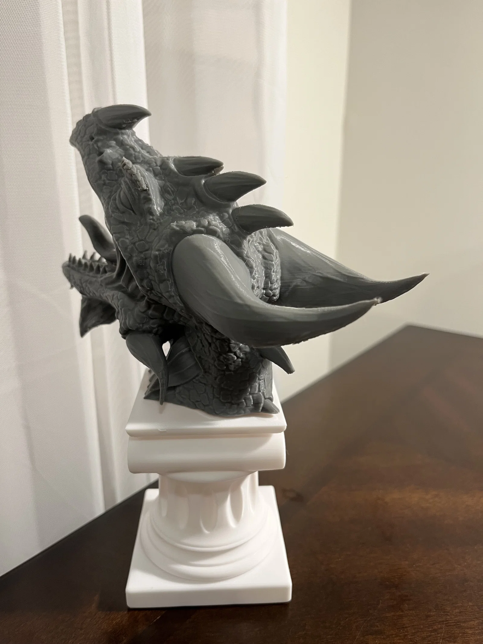 Xem thử mẫu bust đầu rồng siêu chi tiết này nè! Điêu khắc với texture tinh xảo và biểu cảm đầy uy lực, đôi mắt sắc lạnh cùng phần mõm gầm gừ làm con rồng như sống dậy. Từ cặp sừng sần sùi, lớp vảy sắc nét cho tới những đường nét chuyển nhẹ trên gương mặt, từng chi tiết đều toát lên cảm giác sức mạnh huyền thoại và bí ẩn. Quá hợp cho fan fantasy và anh em mê 3D printing — trưng bày thì nổi bật, mà đem sơn/paint project cũng đã mắt!