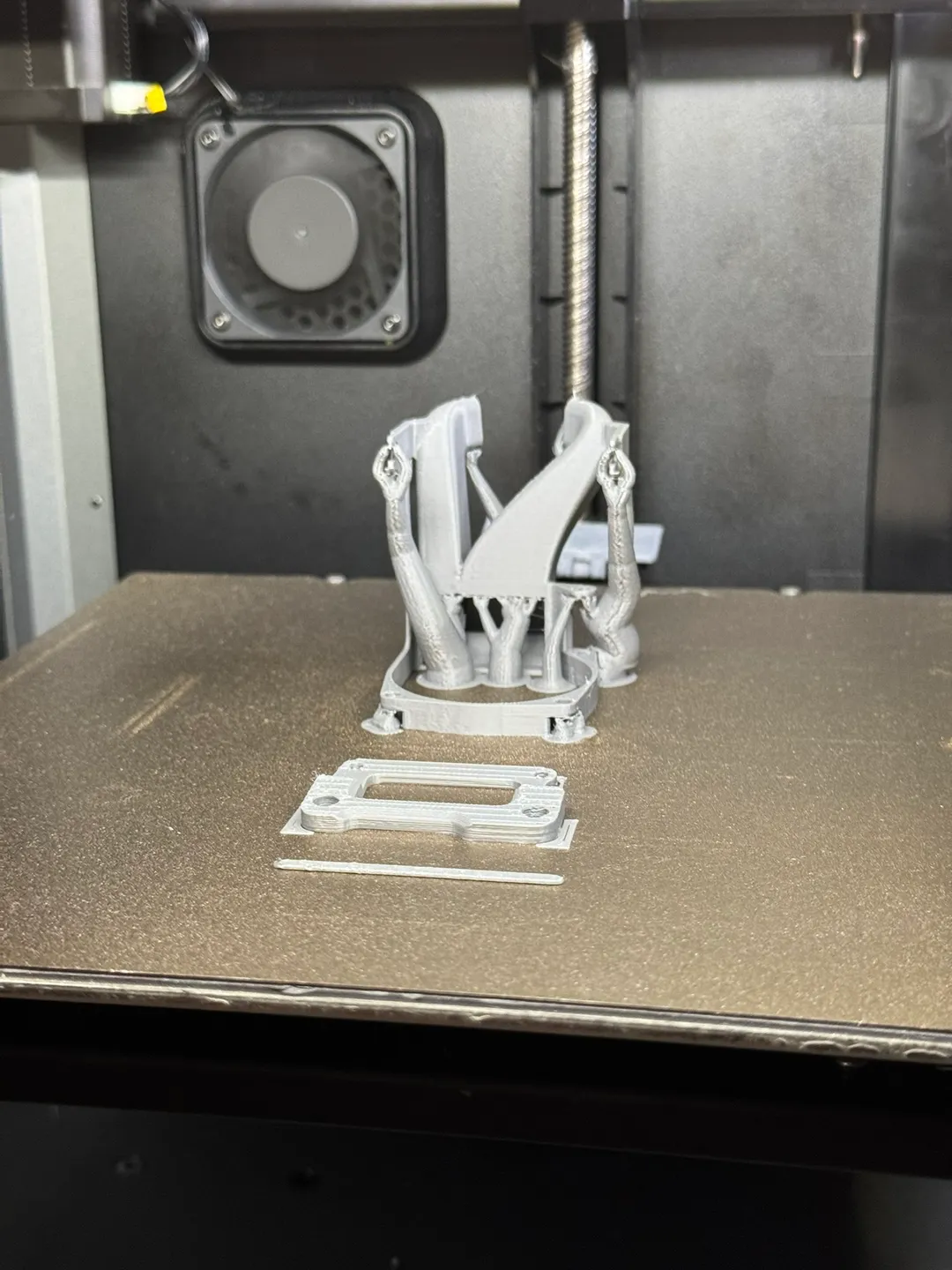 Mình khuyên nên in bằng ASA để chịu nhiệt tốt hơn. Mình dùng organic tree supports từ bed thôi, và chỉ dùng cho các phần overhang hơn 25 độ. Thành (walls) dày 0.8mm, nên sẽ khá chắc khi in với nozzle 0.4 ở layer height 0.2.