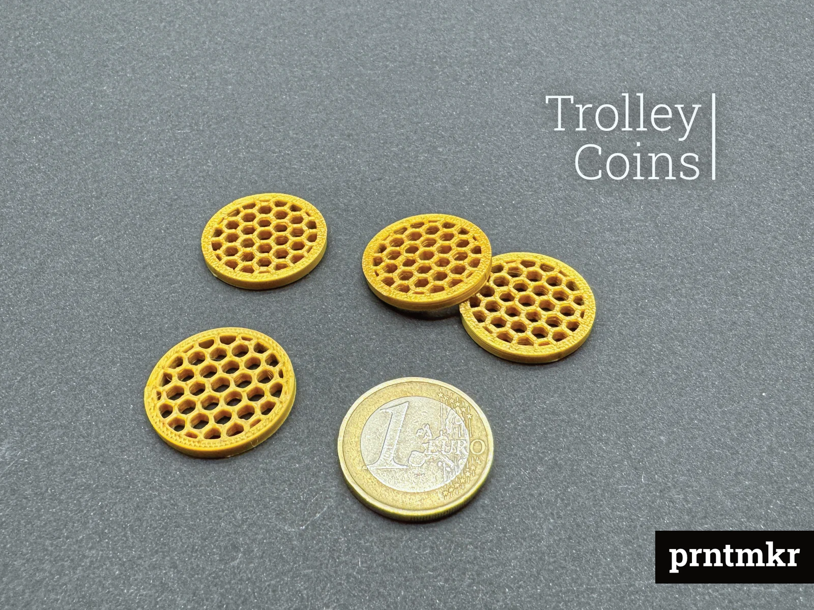 Đồng trolley coin 1€ in 3D giúp mở khóa xe đẩy siêu thị mà không cần tiền thật. Thiết kế dễ in, tiết kiệm filament hơn nhiều mẫu khác. Có 2 bản: tùy chỉnh setting hoặc preset lưới honeycomb.