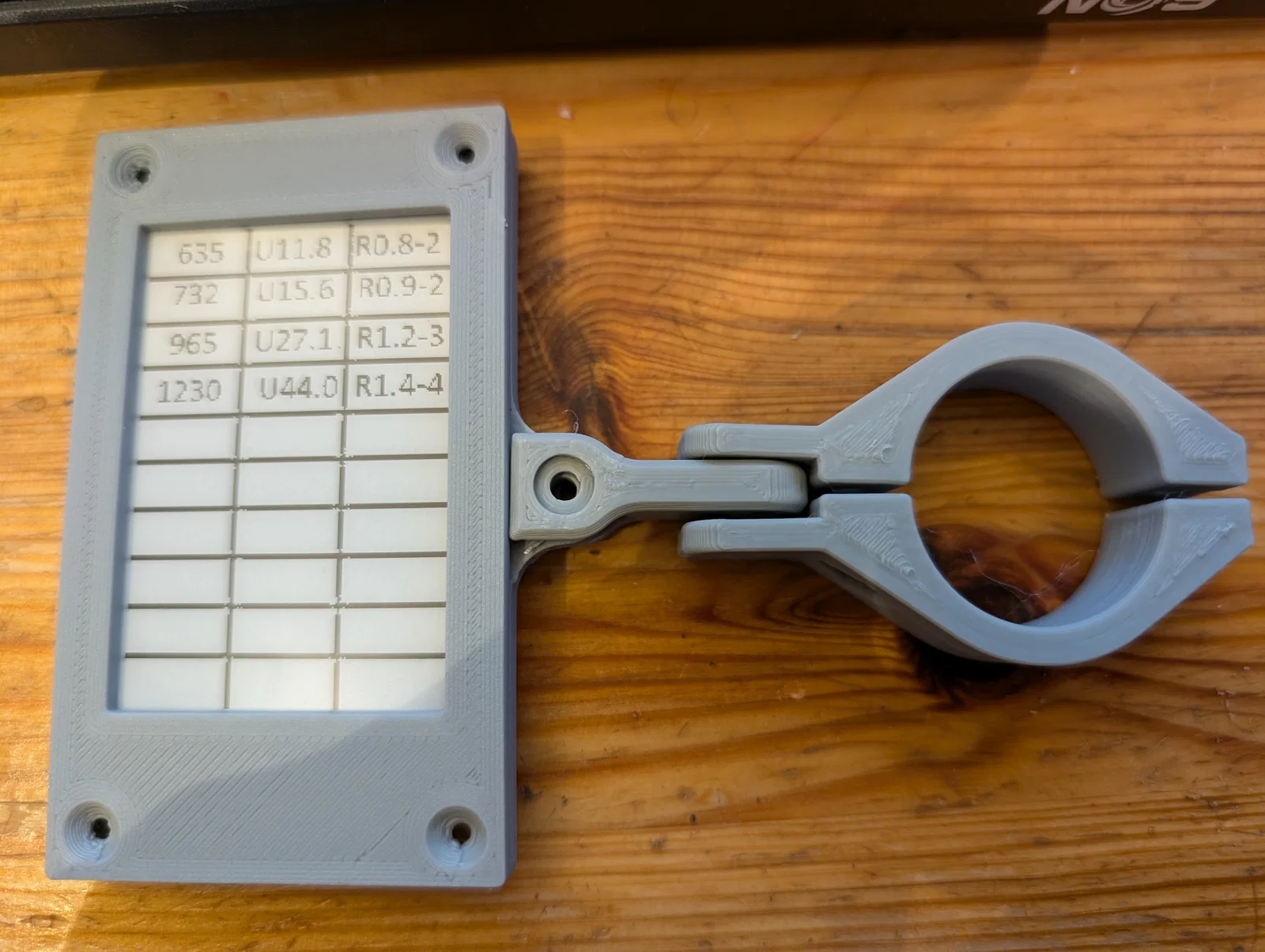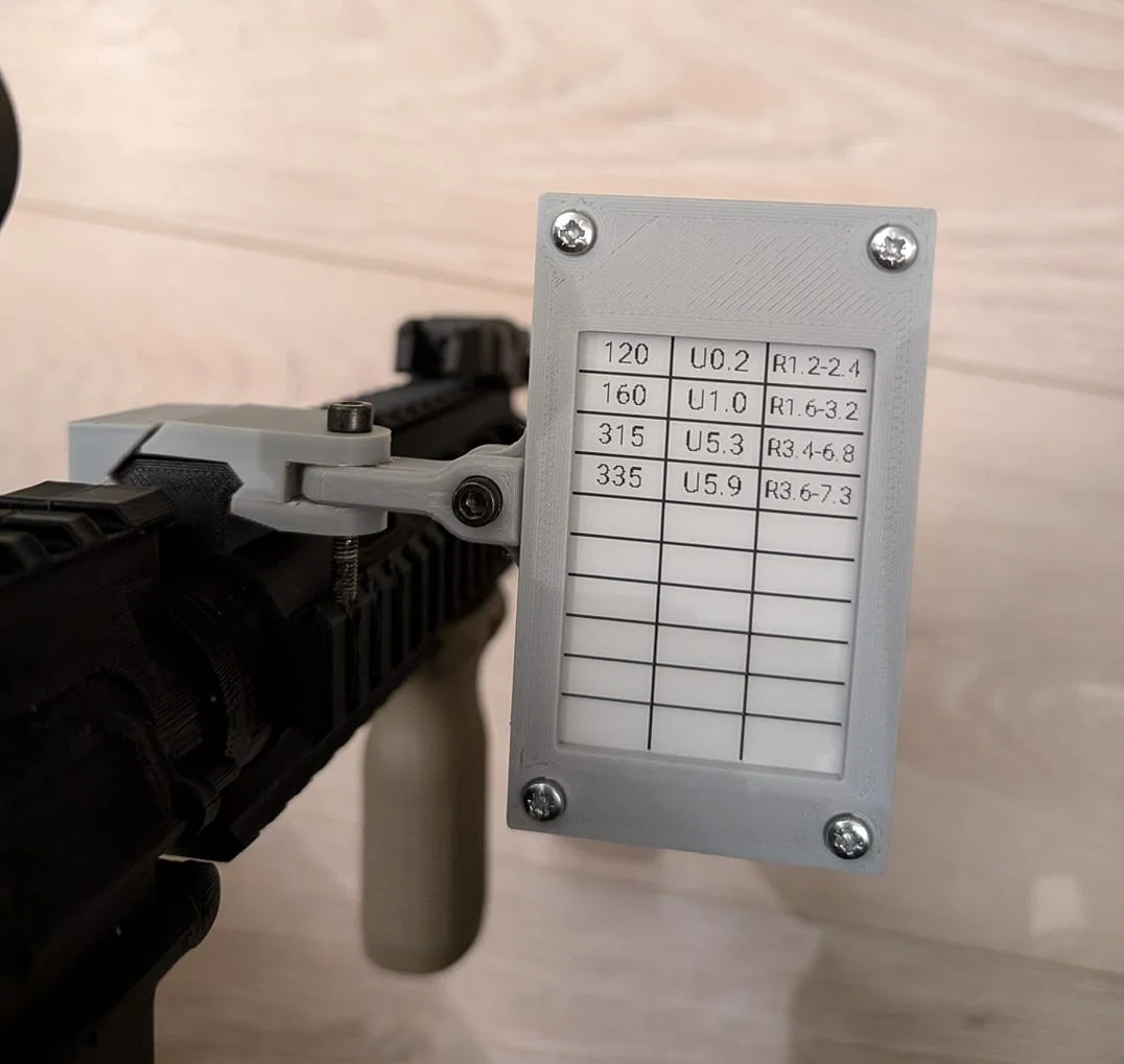 Mô hình giá đỡ thẻ DOPE cho màn hình Waveshare 2.7" NFC, giúp hiển thị dữ liệu đạn đạo từ Strelok Pro. Thiết kế linh hoạt, hỗ trợ lắp Picatinny và vòng gắn kính cho xạ thủ.