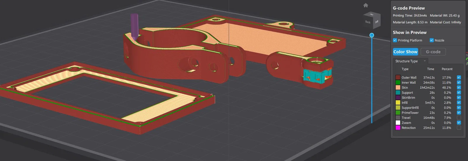 Tôi đã in thử nghiệm bằng nhựa PLA, nhưng khuyến khích anh em nên dùng PETG hoặc các loại vật liệu bền bỉ hơn để dùng ngoài trời.