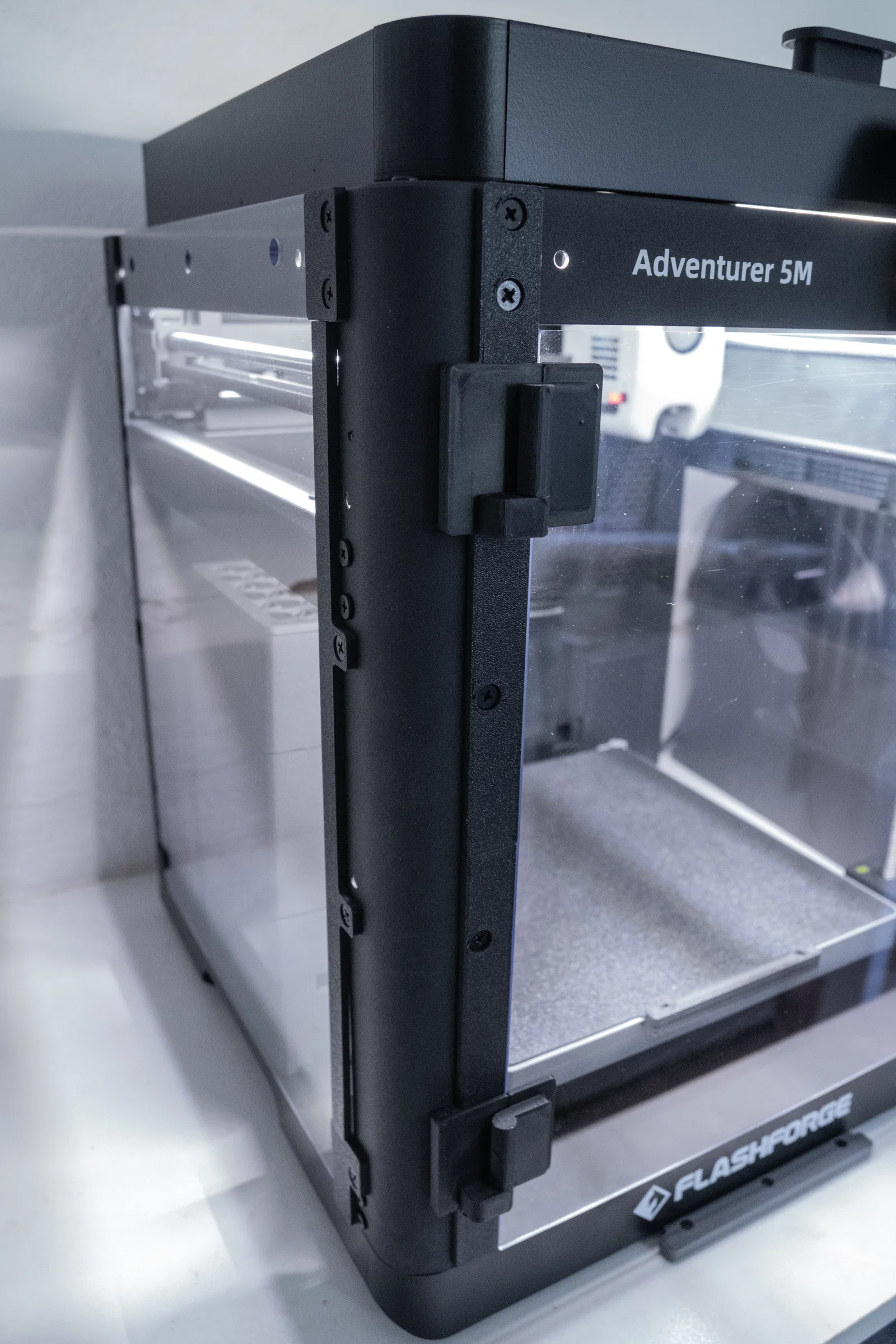 Bộ enclosure tối giản cho Flashforge Adventurer 5M (AD5M), chủ yếu tận dụng linh kiện từ Flashforge Enclosure kit. Giữ nguyên vị trí màn hình, panel/cửa tháo lắp nhanh không cần dụng cụ, có file thiết kế để remix dễ dàng.