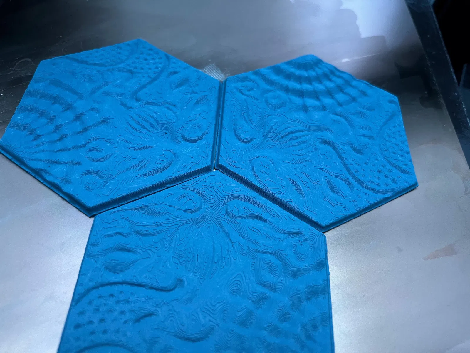 Một mô hình gạch của Gaudi được tìm thấy trên một số vỉa hè ở Barcelona. Kích thước khoảng bằng kích thước lót ly và dày khoảng 5mm. Nếu bạn thay đổi tỷ lệ, bạn có thể muốn giữ độ dày giống nhau để đảm bảo nó có thể in được.