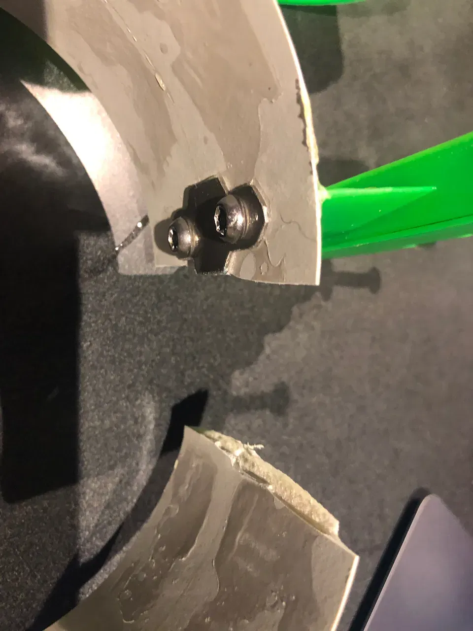Tải lên phiên bản V4 của cánh tản nhiệt hình vòng để thể hiện sự tiến hóa thiết kế. Khái niệm này giới thiệu tấm chuyển tải để chuyển tải tải trọng từ các bu lông tuttle đến cánh. Điều này được giấu bên trong bộ kết nối tuttle. Một lần nữa, cánh đã thất bại nhanh chóng vì PVC không đủ mạnh.