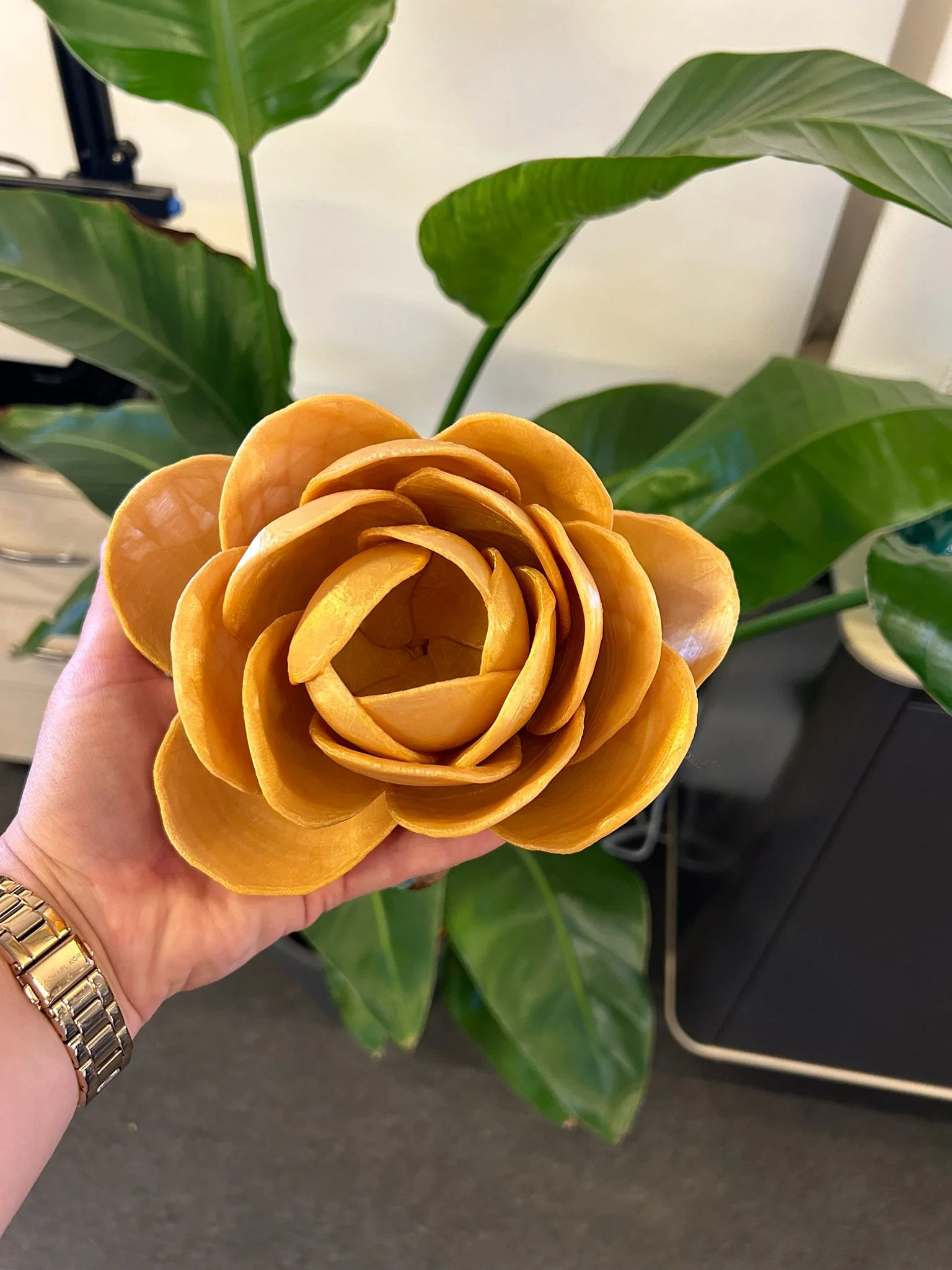 Việc in ấn mô hình này không quá phức tạp nhưng đòi hỏi sự tỉ mỉ để các cánh hoa hiện lên sắc nét nhất. Trong bản in thực tế, việc lựa chọn màu sắc là yếu tố quan trọng để làm nổi bật hình dáng của hoa. Bạn có thể sử dụng các loại nhựa PLA Premium có độ bóng nhẹ như màu vàng gold để tạo cảm giác cao cấp và bắt mắt. Sản phẩm sau khi in xong có kích thước vừa vặn trong lòng bàn tay, rất thích hợp để làm phụ kiện chụp ảnh hoặc trưng bày trong không gian nhỏ.