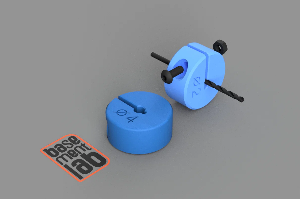 Mẫu Drill Bit Stopper/Depth Stop Ø4mm dùng ren M3, giúp canh độ sâu khi khoan ổn định hơn. Cần vít DIN-7985 PH1 M3x16mm và (bản NTV) thêm đai ốc DIN-934 M3. Có thể resize để chỉnh kích thước.