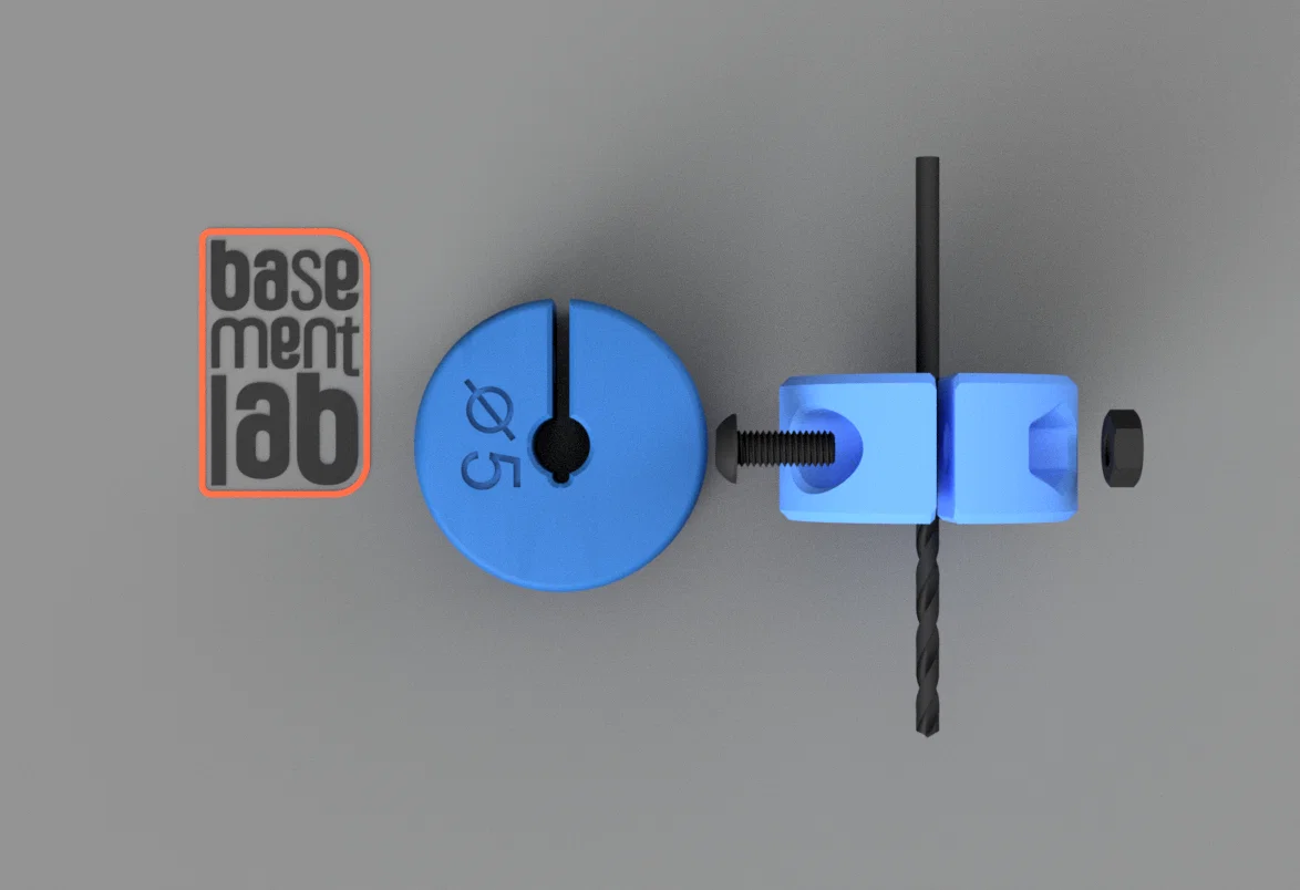 Mẫu Drill Bit Stopper/Depth Stop Ø5mm dùng ren M3 để giới hạn độ sâu khoan. Cần vít DIN-7985 PH1 M3x16mm; phiên bản NTV cần thêm đai ốc DIN-934 M3. Có thể resize để chỉnh kích thước cho phù hợp.