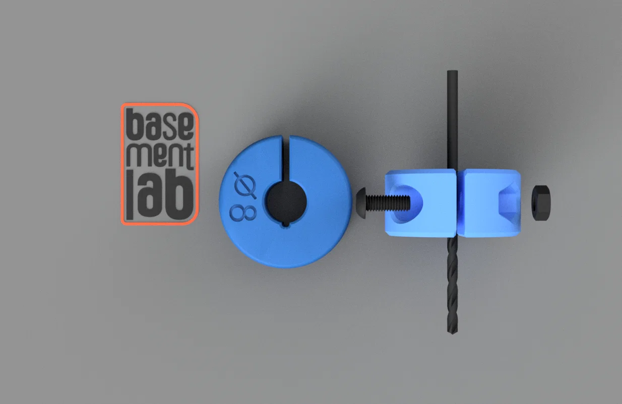 Chặn mũi khoan (depth stop) Ø8mm ren M3 giúp canh đúng độ sâu khi khoan. Cần vít DIN-7985 PH1 M3x16mm; riêng bản NTV cần thêm đai ốc DIN-934 M3. Có thể resize để chỉnh kích thước.