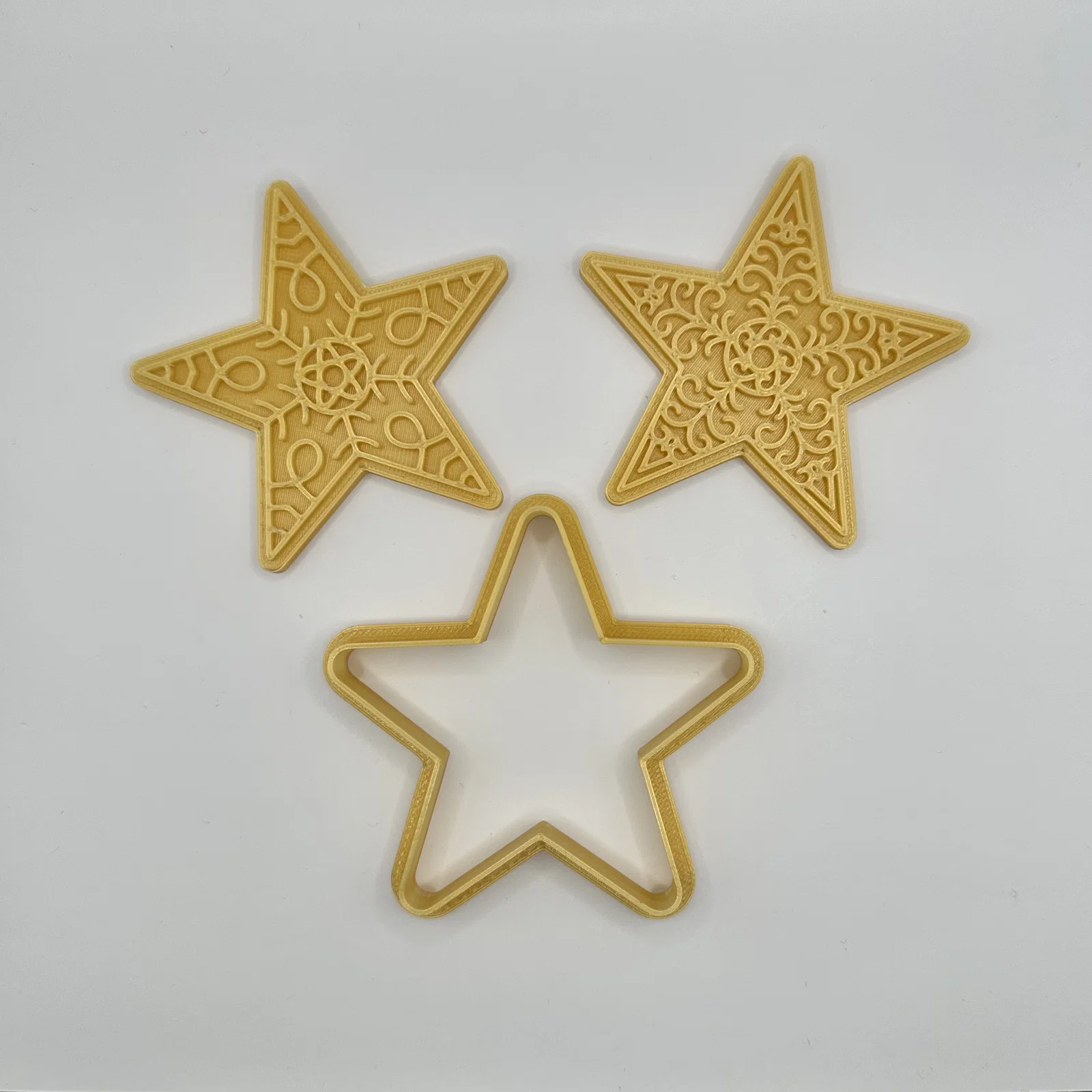 - Cấu trúc thiết kế: Bộ khuôn bao gồm 1 khung cắt rời và các mặt stamp đi kèm, cho phép bạn linh hoạt thay đổi hoa văn trên cùng một kích thước ngôi sao.
