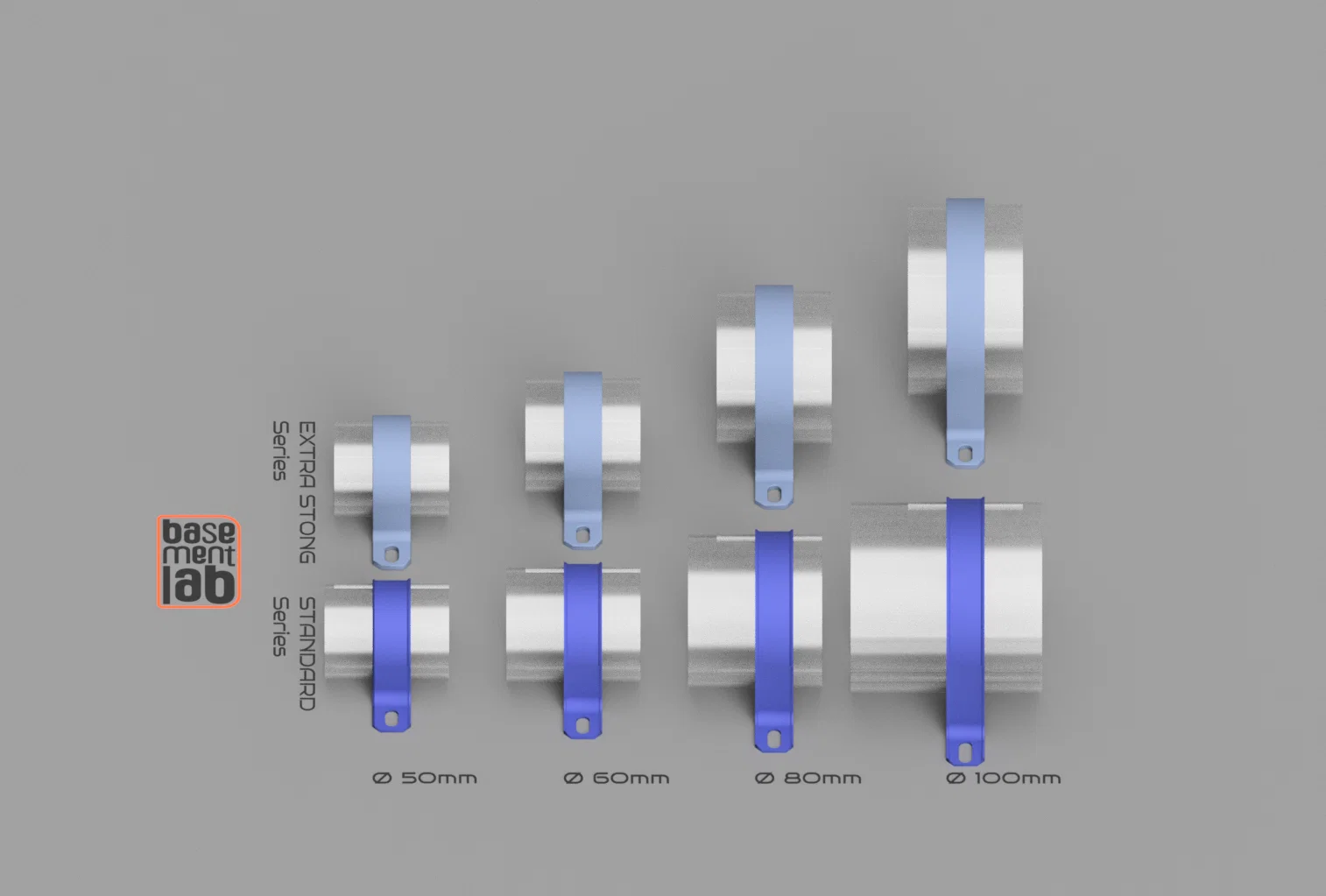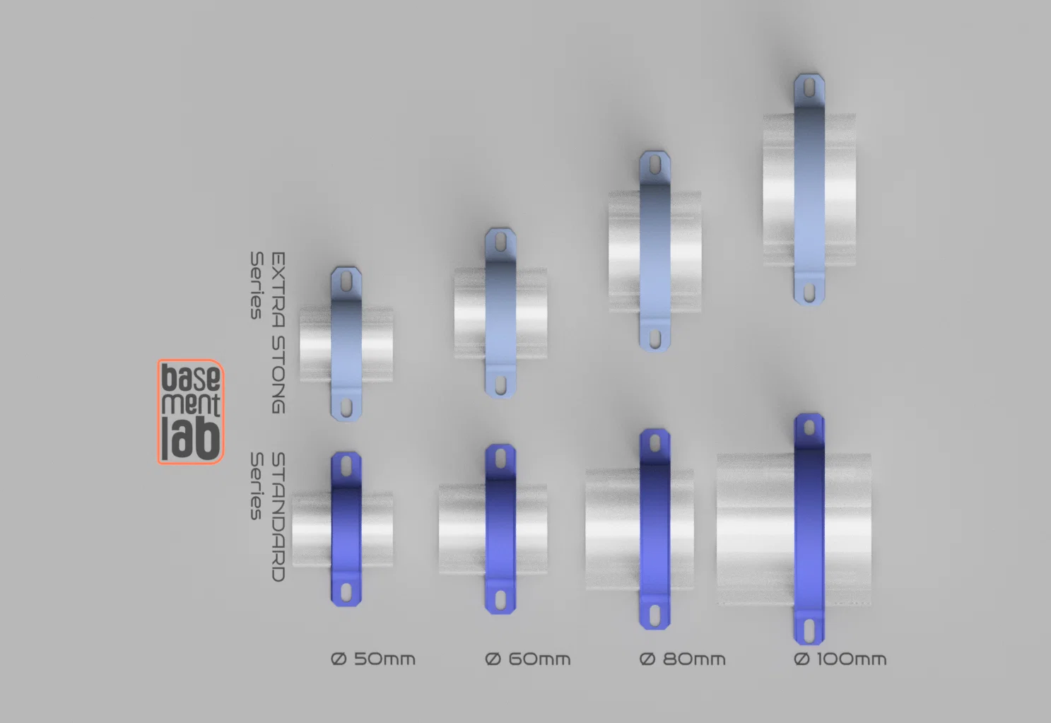 Mẫu U-Strap Clamp 2 lỗ dùng để cố định ống trơn hoặc ống có cách nhiệt lên nhiều bề mặt. Có các size Ø50/60/80/100mm, có bản Extra Strong và Lite RV1. Bạn có thể resize để đúng đường kính cần dùng.