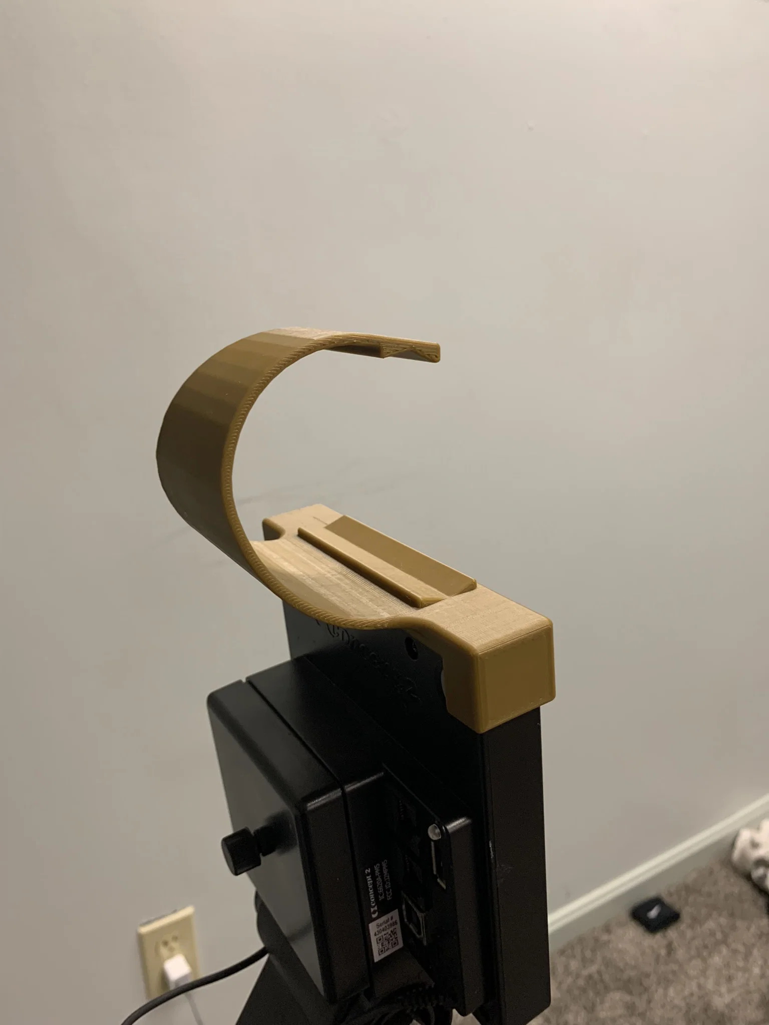 Mẫu này sẽ giữ một chiếc điện thoại cỡ lớn theo chiều ngang ở phía trên màn hình theo dõi hiệu năng PM5. Bạn có thể chỉnh sửa dễ dàng bằng máy sấy tóc để kẹp vừa mọi kích cỡ điện thoại — chỉ cần làm nóng phần vòng cung rồi bẻ theo kích thước điện thoại mong muốn.