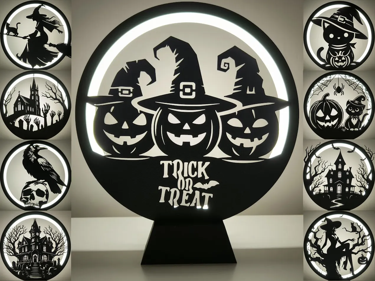 Bạn đang tìm kiếm một món đồ trang trí độc đáo để làm không khí đêm hội Halloween thêm phần huyền bí và ấn tượng? Mẫu Ring Lamp II với các tấm panel chủ đề Halloween chính là sự lựa chọn tuyệt vời cho góc làm việc hoặc phòng khách của bạn. Đây là phiên bản nâng cấp thứ hai của dòng đèn Ring Lamp nổi tiếng, được thiết kế tinh xảo để tạo ra hiệu ứng bóng đổ ma mị khi kết hợp cùng dải đèn LED phía sau.