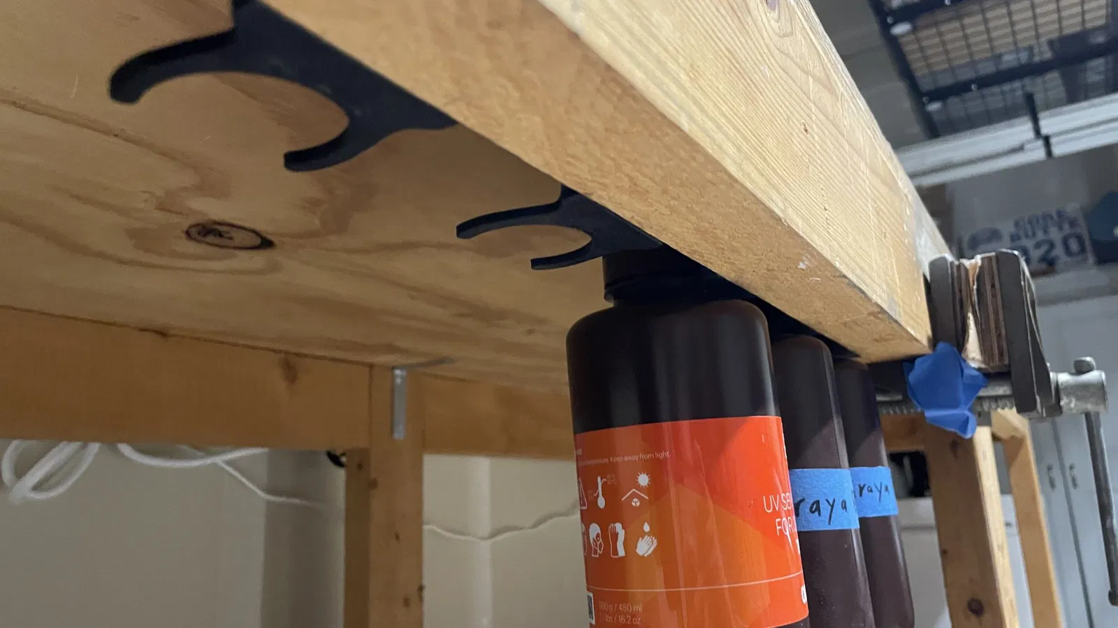 Sử dụng điều này để treo các chai nhựa bên dưới không gian làm việc của bạn thay vì chiếm không gian trên bàn làm việc của bạn!