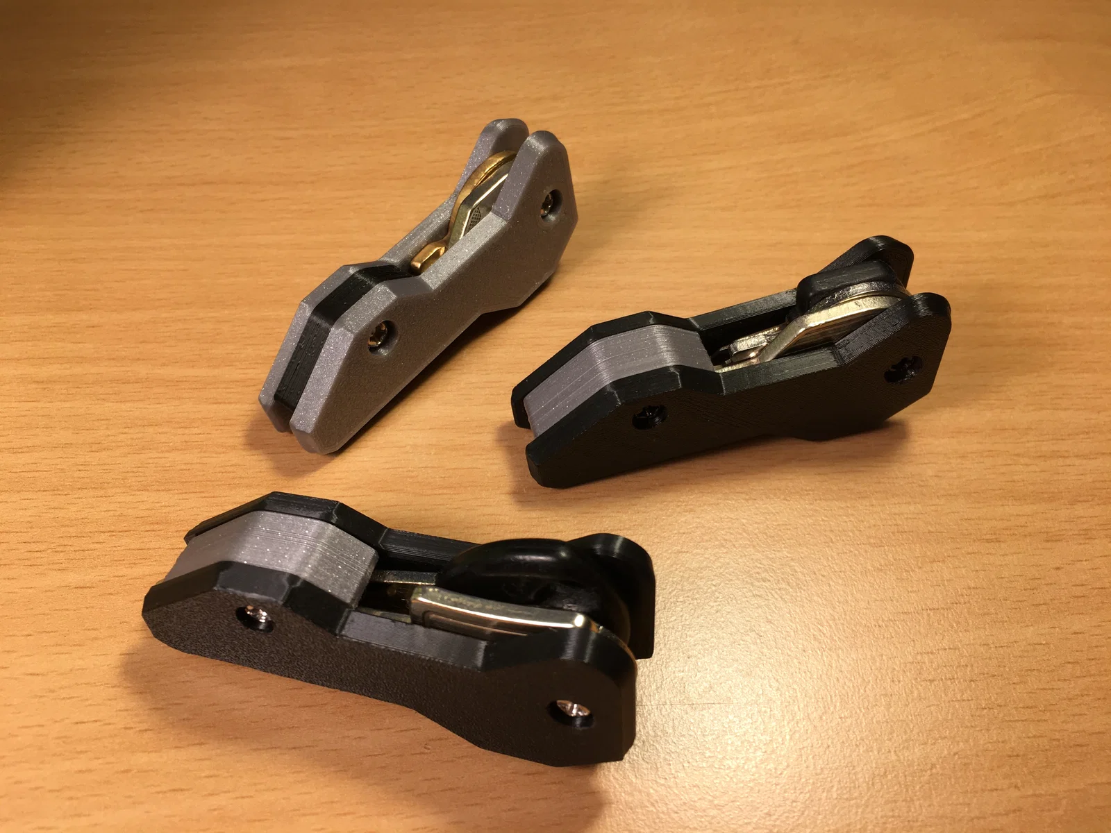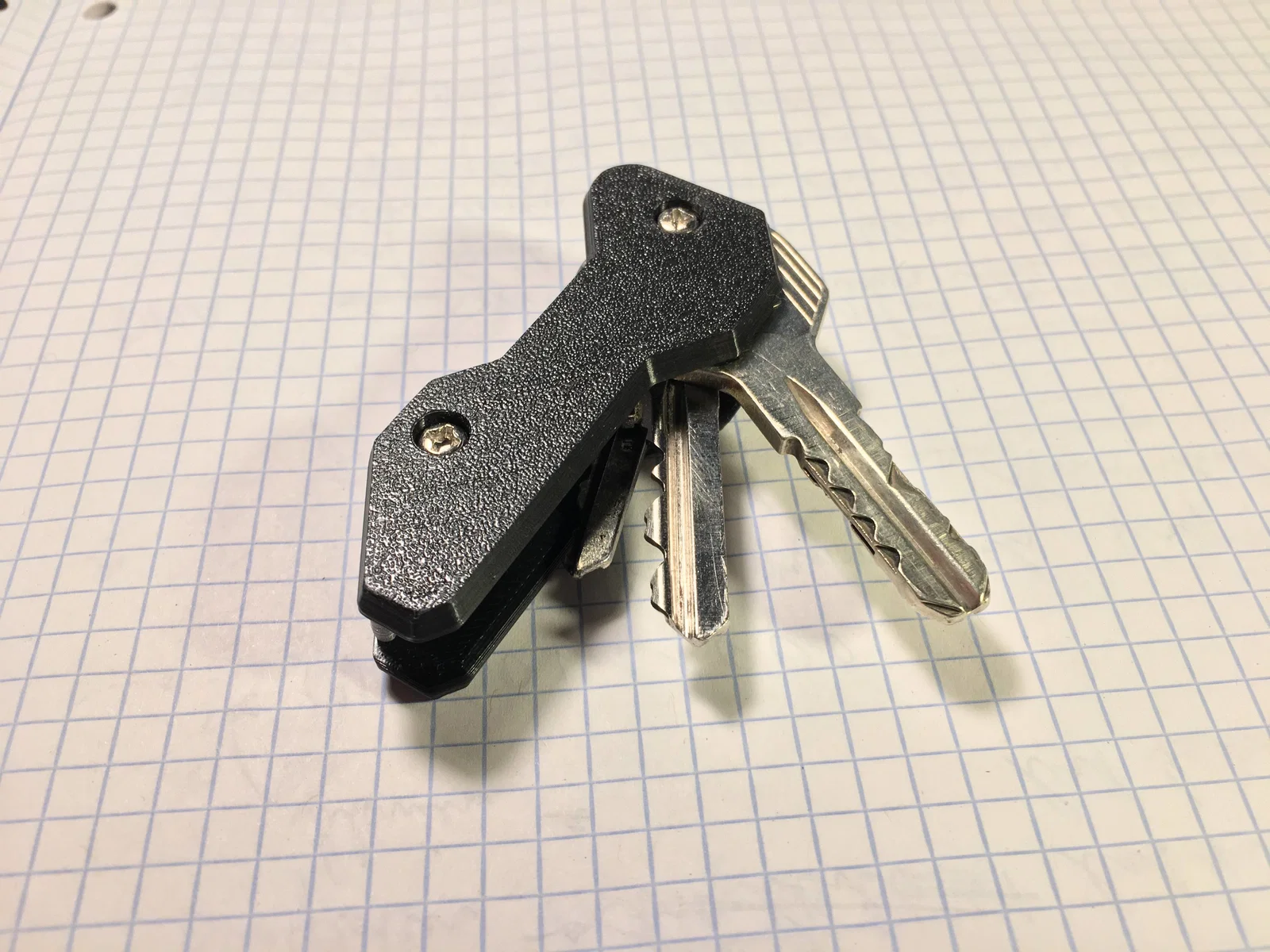 Key Organizer nhẹ, giúp tránh trầy điện thoại/ví và thao tác bằng một tay. Có thể tùy chỉnh spacer trong slicer theo độ dày chồng chìa. Dùng 2 ốc M3 + 2 ê-cu M3, in dễ, êm không leng keng.