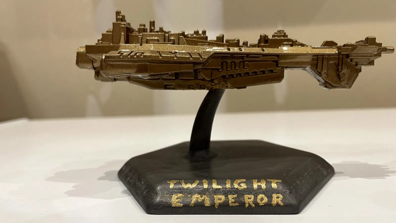 Một chiếc cúp đơn giản mà tôi đã thiết kế cho các trò chơi TI4, và nhà vô địch trị vì để giữ. In bằng nhựa, và dây tóc kim loại.