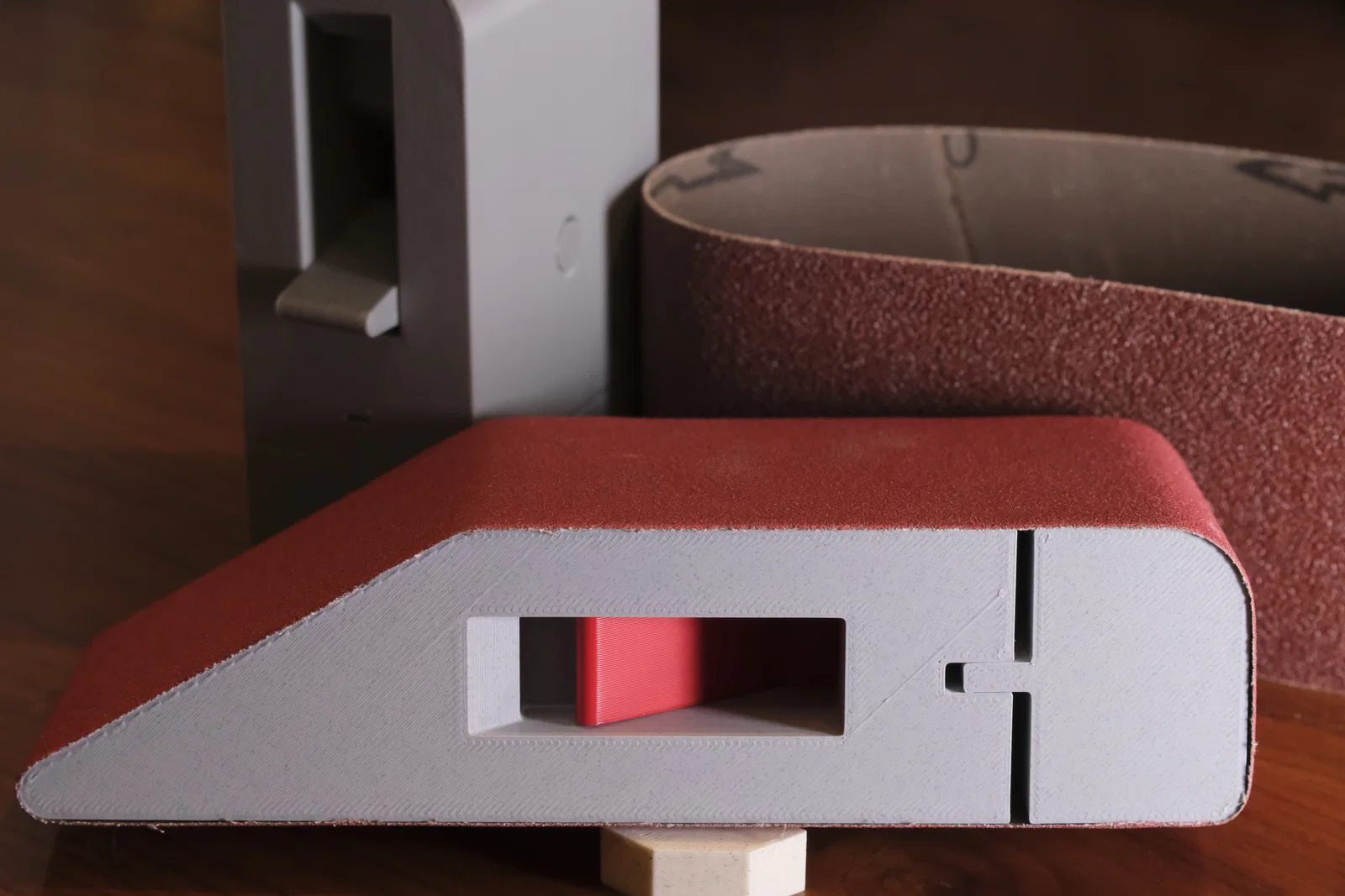 Sanding Block này phù hợp với đa số abrasive belt 75 x 457 mm (3 x 18 inch). Có thể bạn sẽ cần in spacer khác để khớp hoàn hảo với loại đai nhám (sanding belt) theo hãng bạn dùng.