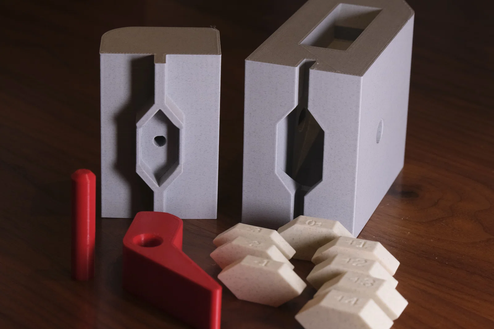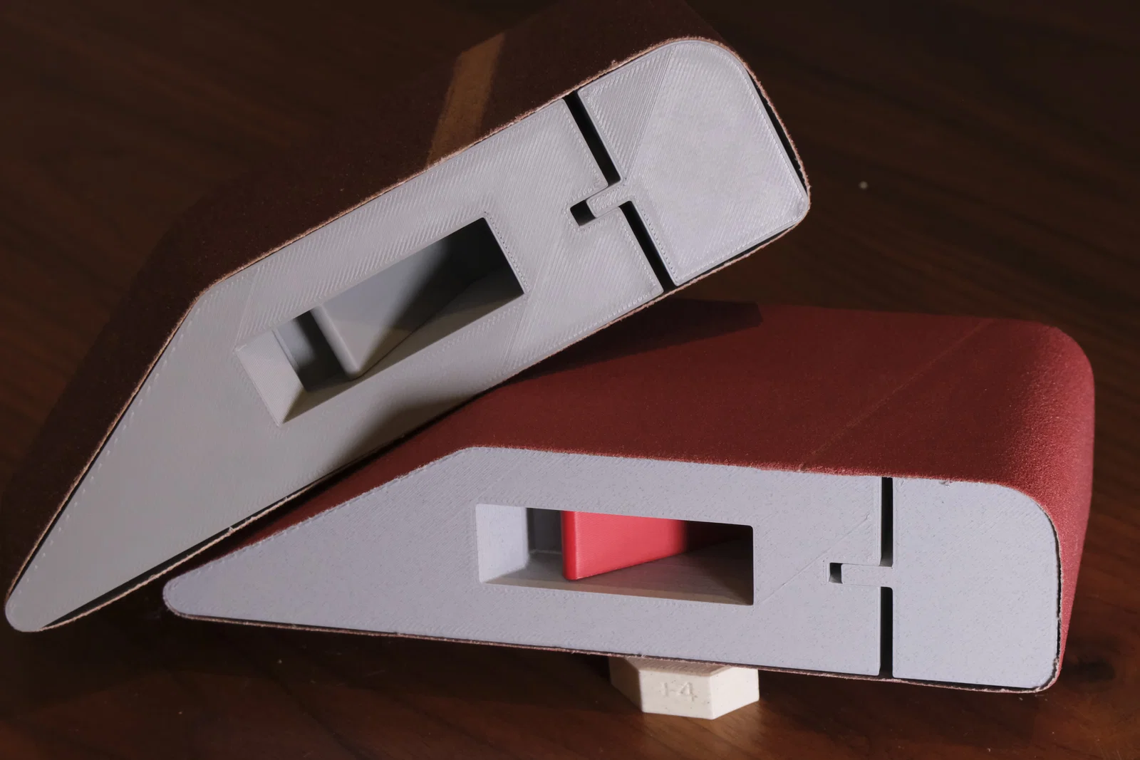 Độ khớp & khe hở: Pin được thiết kế hơi lỏng có chủ ý; khi lắp vào thì nó sẽ được giữ lại nhờ abrasive belt. Các adjusting spacer nên được giữ bằng ma sát trong phần B. Có sẵn lỗ đẩy (ejection hole) để tháo các adjusting spacer khi cần. Hai phần A và B khít nhưng vẫn phải trượt được nhẹ nhàng. Máy in đã calibrate chuẩn thì sẽ không vấn đề gì. Nếu bạn gặp khó khăn, bạn có thể in phần B khác “lỏng” hơn trong thư mục optional.