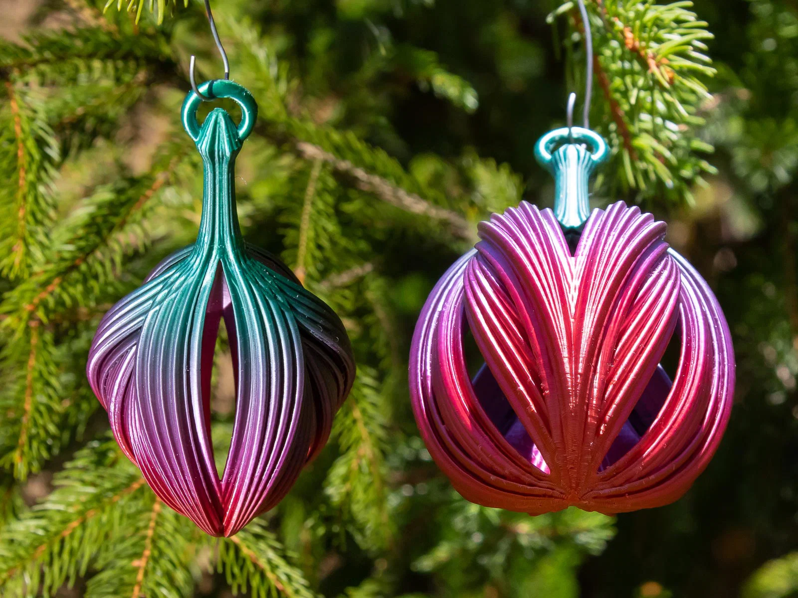 Ornament Noel dáng uốn lượn thanh thoát, nhìn góc nào cũng ra vẻ khác nhau. Khe hở bắt sáng rất đẹp, in màu đặc, rainbow, multi-color, trong suốt hay glow-in-the-dark đều hợp. Có kèm 3MF và GCODE cho Prusa MK3s+.