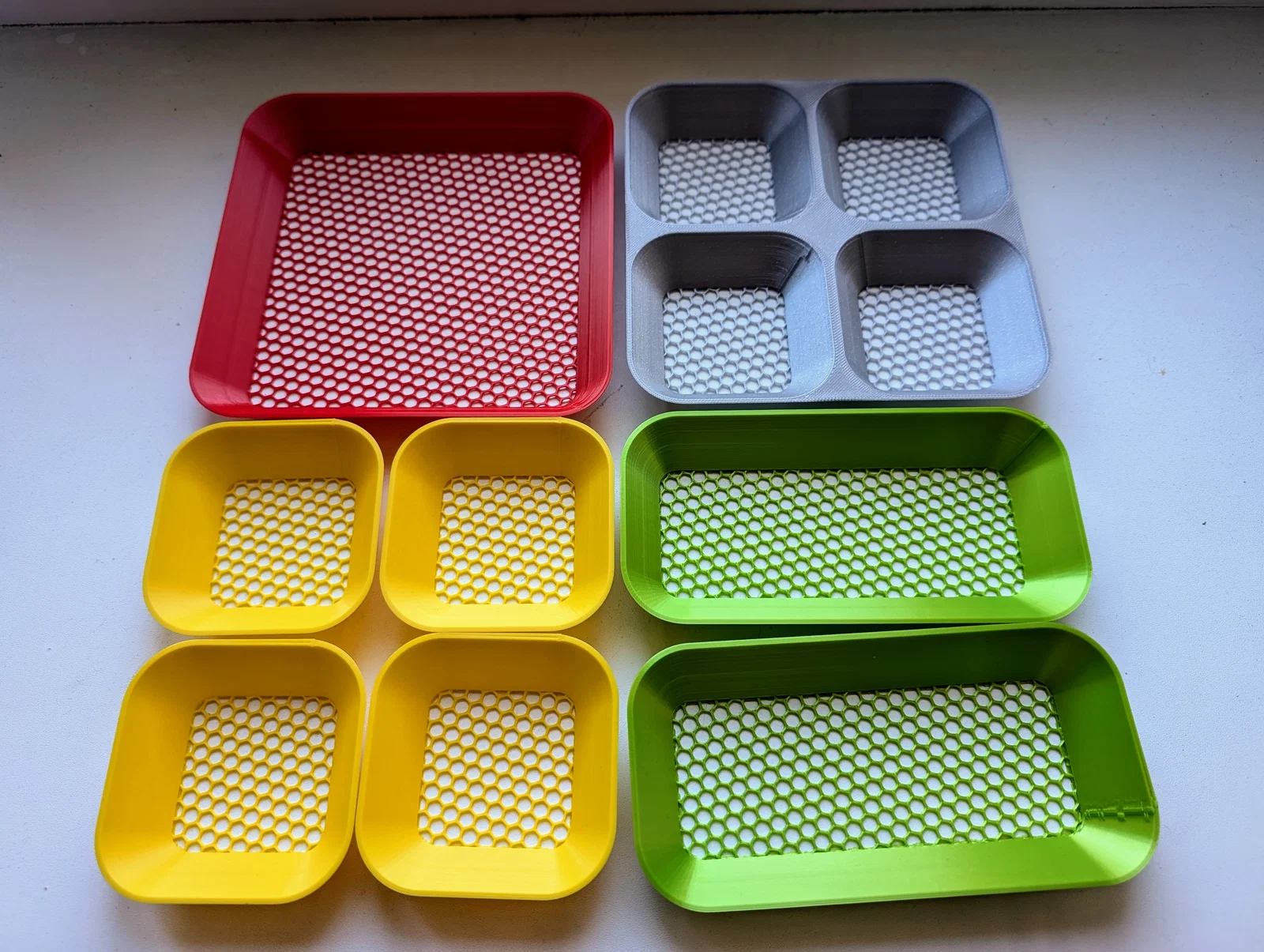 Bộ khay token dạng parametric có thể xếp chồng để đựng token/peg/phụ kiện board game & tabletop. Bản UPDATE đã tích hợp lưới honeycomb vào file STL, không cần modifiers; bản cũ nằm trong thư mục Solid bottom (OLD VERSION).
