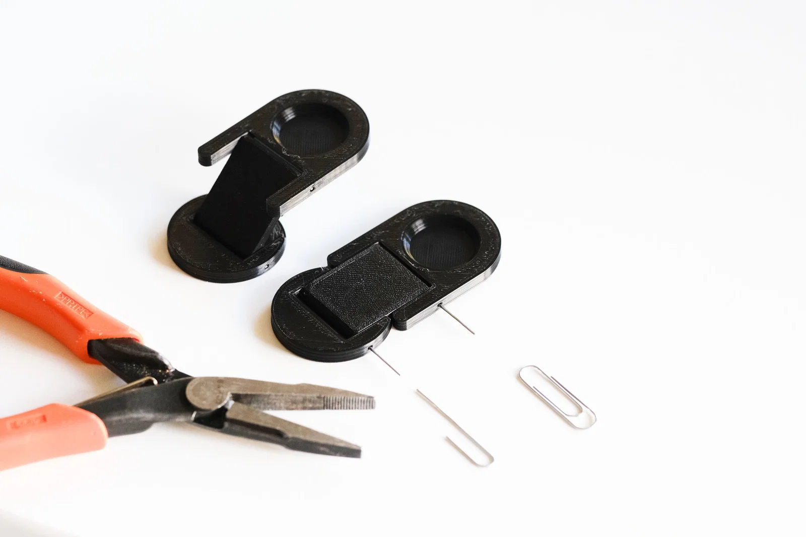 - 2 kẹp giấy văn phòng bằng thép loại tiêu chuẩn, dùng kìm bẻ thẳng rồi cắt thành 4 thanh dài 32mm