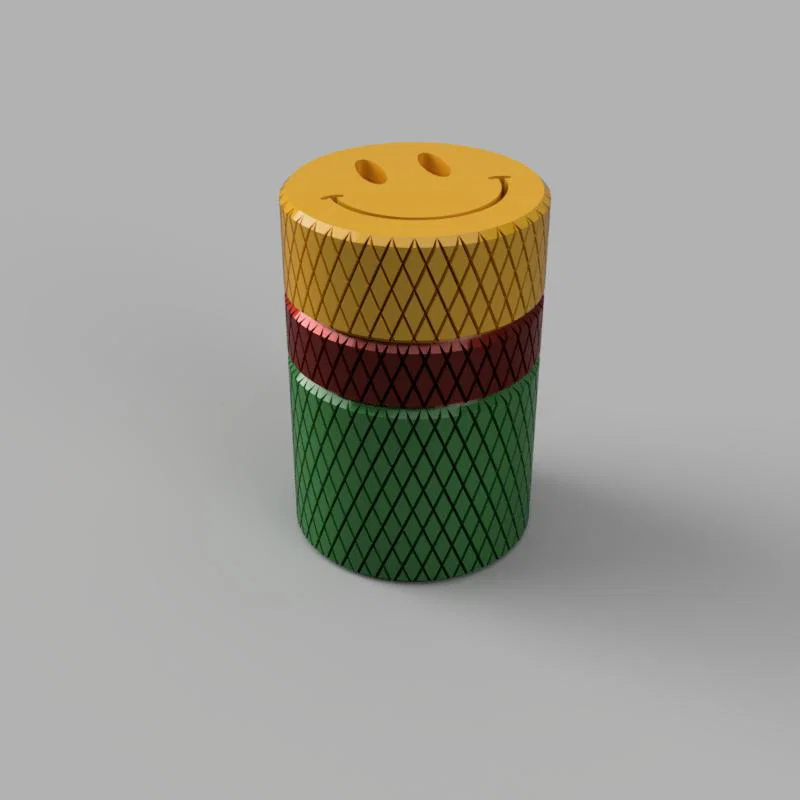 Mẫu Small Pocket Toothless Grinder. Lưu ý khi in: chỉ phần grid cần support, nếu kẹt do tolerance thì chỉnh horizontal expansion trong slicer, và nhớ tránh wall seam để cối xay quay mượt (có thể giấu seam trong wall settings).