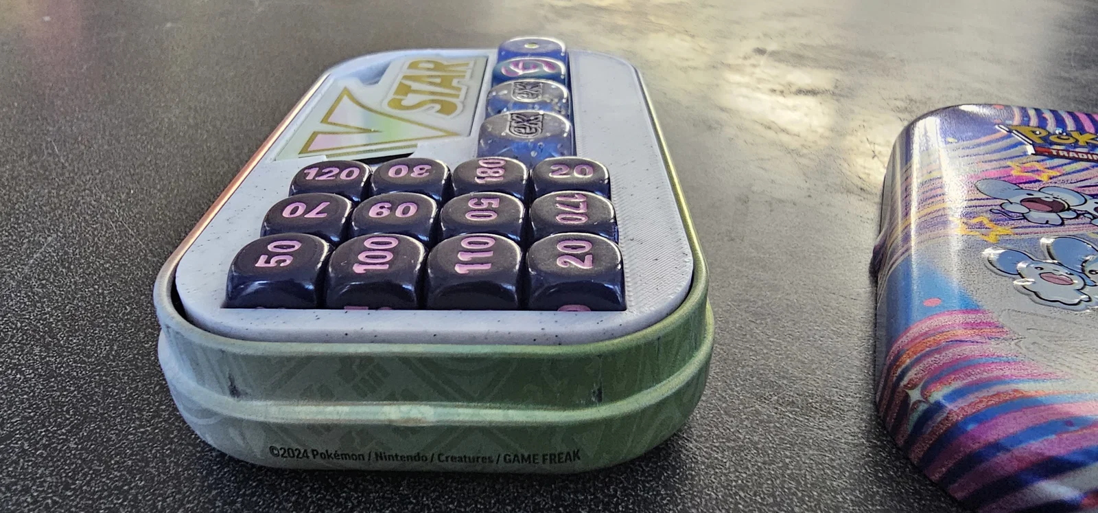 Bạn đang sở hữu nhiều hộp thiếc (Mini Tin) của Pokemon TCG và cần một cách sắp xếp phụ kiện khoa học? Mẫu thiết kế 3D này là giải pháp hoàn hảo để lưu trữ gọn gàng 12 viên xúc xắc sát thương, 4 xúc xắc D6, 2 đồng xu đánh dấu trạng thái và token V-star. Với các ngăn được chia tách rõ ràng, bạn sẽ không còn lo lắng về việc mất mát hay lộn xộn mỗi khi mang theo bộ bài đi thi đấu. Sản phẩm được thiết kế tối ưu, dễ dàng in 3D với nhựa PLA hoặc PETG mà không cần hỗ trợ (support), đảm bảo độ bền và tính thẩm mỹ cao, giúp không gian bên trong Mini Tin trở nên chuyên nghiệp, ngăn nắp hơn bao giờ hết cho các game thủ.