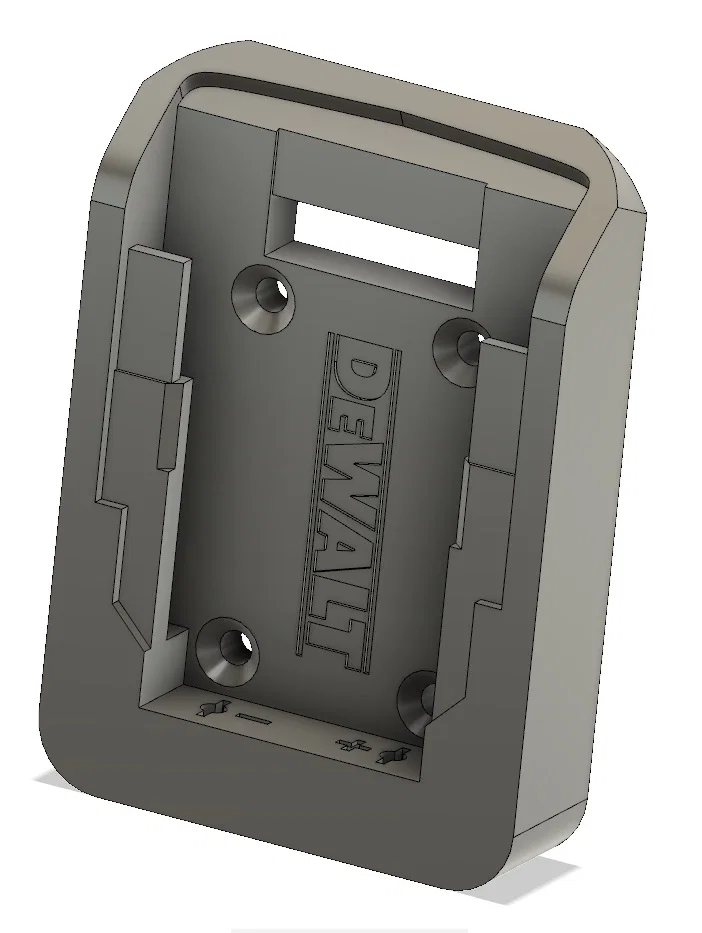 Mẫu giá treo tường Breakout dành cho pin Dewalt, giúp gắn pin lên tường gọn gàng và dễ lấy. Phù hợp để in 3D (ví dụ PLA) và sắp xếp khu vực làm việc ngăn nắp hơn.